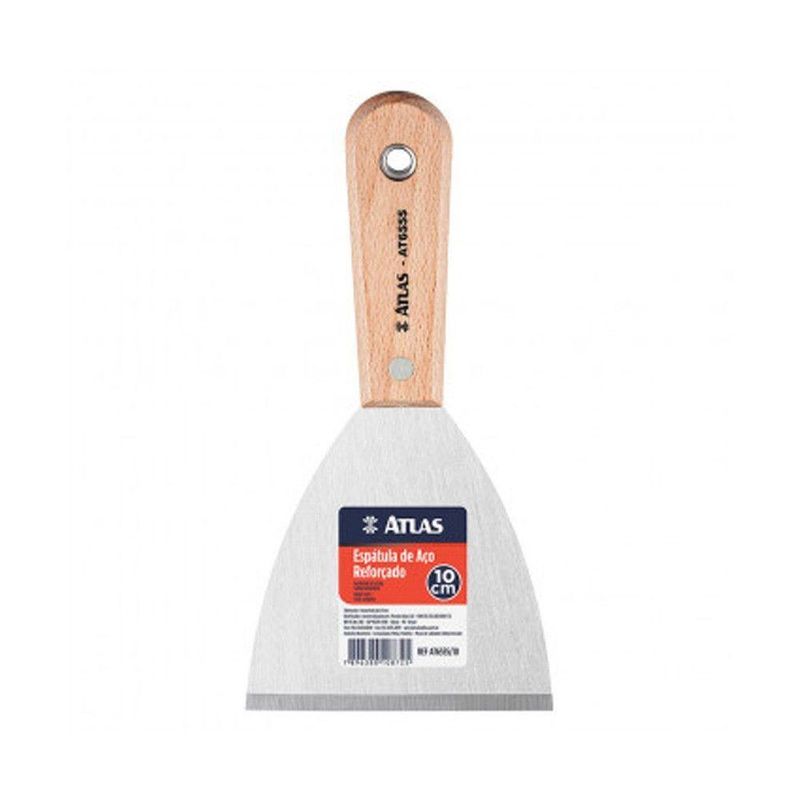 Espatula De Aço Reforçado 100mm - AtlasApresentamos a Espátula De Aço Reforçada 6555/10 da marca Atlas, uma ferramenta indispensável para qualquer profissional ou entusiasta do bricolage. Com uma lâmina de aço de 10 cm, esta espátula é perfeita para uma variedade de tarefas, desde a remoção de tinta velha até a aplicação de massa corrida.O design robusto e reforçado da lâmina de aço garante durabilidade e resistência, permitindo que você enfrente os trabalhos mais difíceis com confiança. A lâmina de 10 cm é ideal para trabalhos de precisão, oferecendo controle e flexibilidade sem comprometer a força.O cabo de madeira não só adiciona um toque de elegância, mas também oferece um aperto confortável e seguro. Este material natural é conhecido pela sua resistência e durabilidade, garantindo que a sua espátula Atlas 6555/10 irá durar por muitos anos.