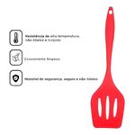 Espátula De Silicone Vermelha Para Frituras 30cm - Utensílio Profissional ChapeiroApresentamos a Espátula de Silicone Vermelha para Frituras 30cm - Utensílio Profissional Chapeiro, uma ferramenta indispensável para quem busca praticidade e segurança na cozinha. Fabricada inteiramente em silicone de alta qualidade, este utensílio é ideal para o preparo de uma variedade de alimentos, garantindo excelentes resultados na sua cozinha.Com um design que combina durabilidade e eficiência, a espátula é resistente ao calor, o que a torna perfeita para uso em panelas e frigideiras antiaderentes. Dessa forma, suas superfícies permanecem protegidas, evitando arranhões e danos, mesmo durante os preparos mais exigentes.O seu design vazado é uma característica que se destaca, pois permite que o óleo e os caldos escorram de maneira eficiente. Isso resulta em alimentos mais sequinhos e crocantes, tornando suas frituras ainda mais saborosas e com menor teor de gordura. Um ótimo recurso tanto para o uso cotidiano quanto para ambientes profissionais.Além disso, a higienização facilitada do silicone torna essa espátula uma escolha prática e funcional. Com a habilidade de ser facilmente lavada, ela se adapta perfeitamente à rotina de qualquer cozinha, garantindo que você tenha mais tempo para aproveitar suas refeições e menos preocupações com a limpeza.Com uma dimensão de 30 cm de comprimento e na elegante cor vermelha, esta espátula alia estilo e funcionalidade. Seu uso é recomendado especialmente para o preparo de alimentos fritos e para servir pratos com eficiência e elegância, tornando cada refeição ainda mais especial.Adquira a sua Espátula de Silicone Vermelha da marca TRAZPRACA e experimente a combinação perfeita de estilo, funcionalidade e segurança na sua cozinha. Invista em qualidade e tenha a confiança que um utensílio de alto desempenho pode proporcionar.
