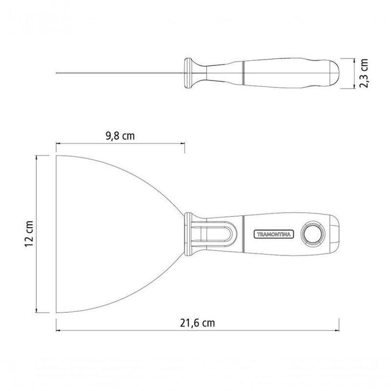 Espátula ível Tramontina 12cm Em Aço Carbono Cabo PlásticoCom a espátula ível 12 cm Tramontina em aço carbono com cabo de polipropileno, construir e reformar se torna mais prático e eficiente. Ideal para aplicação de gesso, massa corrida, rejunte e outros materiais, ela conta com lâmina de 12 centímetros em aço carbono especial, que oferece alta durabilidade graças à afiação diferenciada. Seu cabo em polipropileno possui ranhuras e formato ergonômico, proporcionando mais conforto e no manuseio. Leve e resistente, é a ferramenta certa para quem busca produtividade com menos esforço e resultados profissionais em cada etapa do trabalho.Recomendações de Uso:Modo de uso: Utilizada na construção civil para raspagem de tinta, cimento e outros resíduos. Para descarte dos produtos e embalagens siga as orientações de reciclagem vigentes.- Foto meramente ilustrativa.Informações Adicionais:- Cabo produzido em polipropileno de alta resistência;- Fabricada em aço carbono especial de alta qualidade;- A lâmina possui tamanho 12 cm e sua afiação proporciona excelente durabilidade do fio;- O cabo possui ranhuras e tem formato ergonômico, assegurando mais conforto durante o uso;- Produto leve e ível, que gera menos esforço físico do usuário e proporciona maior produtividade.