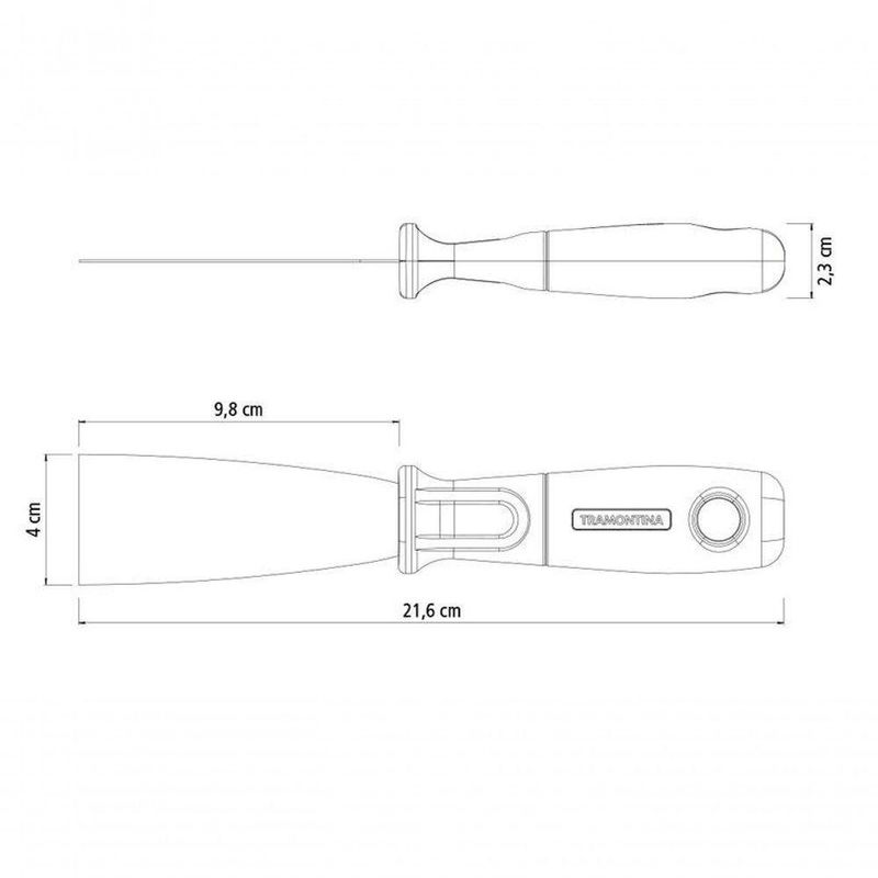Espátula ível Tramontina 4cm Em Aço Carbono Cabo PlásticoSeus projetos vão ganhar mais praticidade e conforto com a espátula ível 4 cm Tramontina em aço carbono com cabo de polipropileno. Produzida com lâmina em aço carbono especial de 4 centímetros, ela oferece alta durabilidade e resistência, graças ao processo de afiação que prolonga a vida útil do fio. O cabo em polipropileno possui ranhuras e design ergonômico, garantindo firmeza e conforto durante o uso. Leve e eficiente, é ideal para aplicação de massa corrida, gesso, rejunte e outros materiais, tornando as tarefas mais produtivas e menos cansativas.Recomendações de Uso:Modo de uso: Utilizada na construção civil para raspagem de tinta, cimento e outros resíduos. Para descarte dos produtos e embalagens siga as orientações de reciclagem vigentes.- Foto meramente ilustrativa.Informações Adicionais:- Cabo produzido em polipropileno de alta resistência;- Fabricada em aço carbono especial de alta qualidade;- A lâmina possui tamanho 4 cm e sua afiação proporciona excelente durabilidade do fio;- O cabo possui ranhuras e tem formato ergonômico, assegurando mais conforto durante o uso;- Produto leve e ível, que gera menos esforço físico do usuário e proporciona maior produtividade.