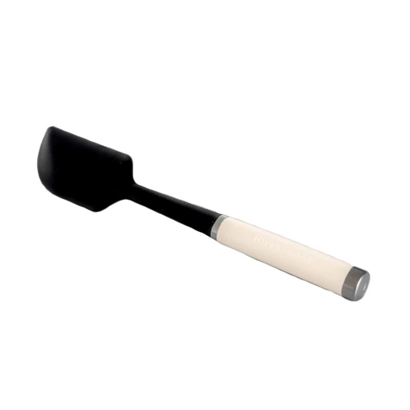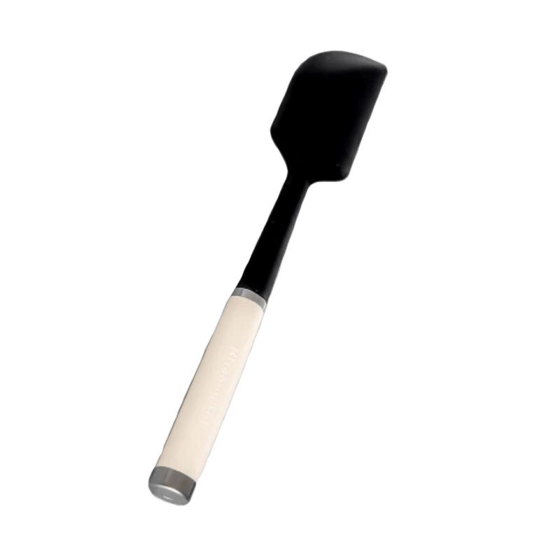 A espátula da KitchenAid possui a ponta principal feita de silicone flexível, com uma borda reta e a outra curva, e possui um cabo de plástico ergonômico.Alisando a massa, retirando a massa da tigela, misturando ingredientes.Uma alça estável feita de plástico de alta qualidade garantirá uma aderência segura e conforto durante a mistura.É segura para usar em todos os utensílios de cozinha, incluindo antiaderentes.É resistente ao calor de 250°C e 482°F.Não expor o utensílio a uma fonte de calor direto, nem levar ao microondas. - Especificações: • Altura: 30cm• Largura: 7cm• Profundidade: 3cm• Cor: Creme