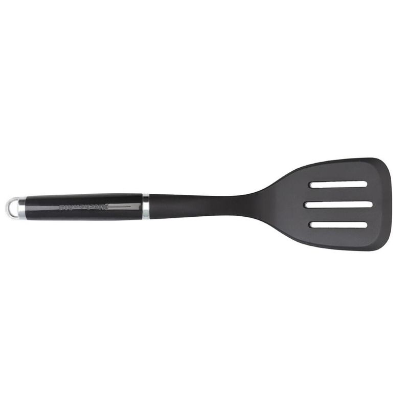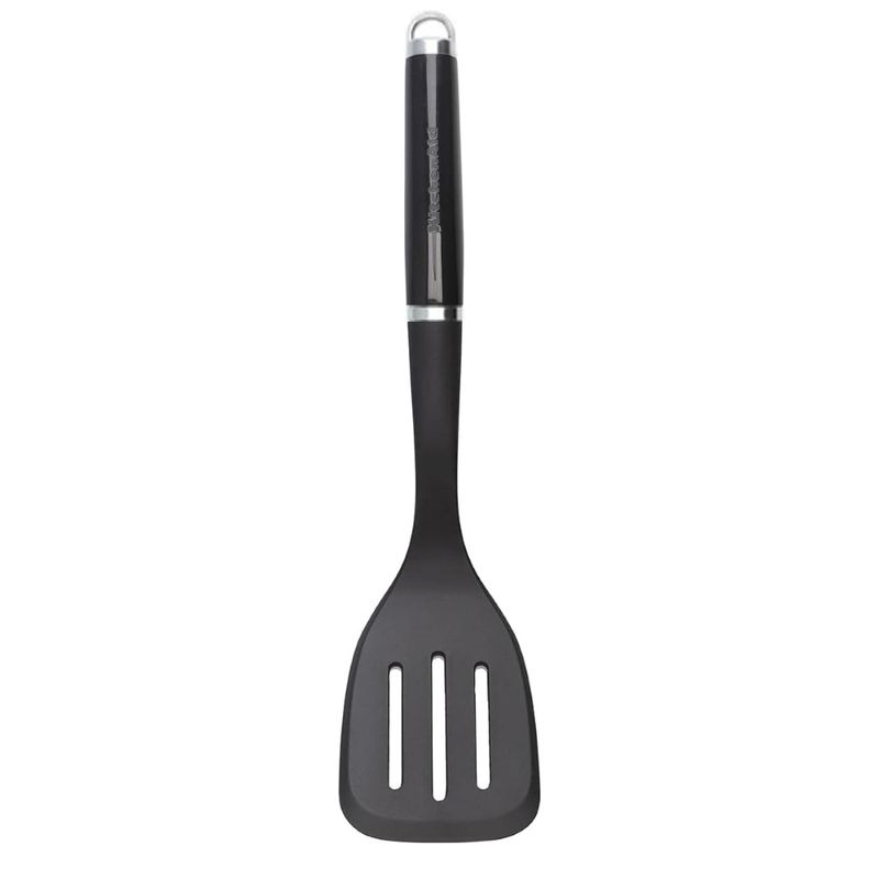 A Espátula Perfurada Kitchenaid é um utensílio que deixa seu dia-dia muito mais prático e elegante, reforçada em fibra de nylon, fornecendo suporte para o melhor desempenho na cozinha. A ponta principal da espátula é grande, por isso ela se torna perfeita para retirar alimentos da frigideira ou panela, sem danificar o antiaderente. - Características: • Produzida em nylon;• Cor: Preto• Resiste ao calor de até 232 °C;• Alta resistêmcia e durabilidade;• Utilizável em todos os utensílios de cozinha, incluindo os antiaderentes;• Seguro para lava-louças.