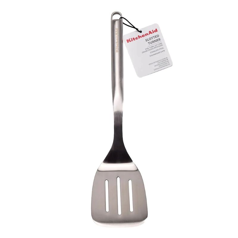 A Espátula Perfurada Premium da KitchenAid é essencial na cozinha.Use-o para mexer, virar, levantar e escorrer alimentos com facilidade.Durável para o uso diário, esta peça é feita de aço inoxidável polido, o que lhe confere um visual elegante e moderno. Também é lavável na máquina de lavar louça para facilitar a limpeza.- Especificações:• Altura: 36cm• Largura: 10cm• Profundidade: 2cm• Cor: Inox• Material: Aço Inox Polido