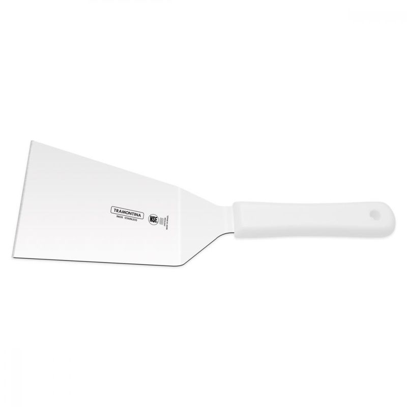 Espátula para frituras 6"x3 1/2" Qualidade e durabilidade para profissionais que trabalham muito. Com tecnologia de ponta, as facas profissionais estão sempre preparadas para entrar em ação e fazer bonito com qualquer ingrediente. Eficiência é o que não falta. A altíssima qualidade das lâminas, resultado do tratamento térmico composto por têmpera (aquecimento da lâmina), subzero (resfriamento de 50 a 196 graus negativos) e revenimento (aumento da elasticidade do aço) garante vida longa e eficiente. A anatomia e ergonomia do cabo de polipropileno texturizado, injetado diretamente sobre a espiga da lâmina, oferecem segurança e conforto durante o manuseio. A proteção antimicrobiana inibe e reduz o crescimento de bactérias e fungos. Essa tecnologia é incorporada durante o processo de fabrição do cabo e dura por toda vida útil do produto, mas não não elimina a necessidade de lavá-los. Lâmina de aço inox DIN 1.4110.Cabo de polipropileno.