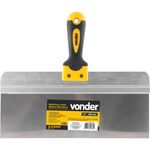 Espátula Para Gesso/drywall 12", Vonder OstenVonder - Conteúdo da embalagem: 1 Espátula. Aplicação: Espátula projetada para aplicação em drywall e demais serviços com gesso. Destaques: Possui perfil feito de aço carbono, cabo sólido ergonômico e punho emborrachado, proporcionando mais conforto ao operador. Referência: 3592100300 Garantia - E (CDC): Garantia legal: 90 dias Massa aproximada (peso): 0,256 kg Largura da lâmina da espátula: 12" - 305 mm Material do cabo da espátula: Polipropileno com revestimento emborrachado Perfil de raspagem da espátula: Liso Material da lâmina da espátula: Aço carbono Destaques Comercial: Possui perfil de aço carbono, cabo sólido ergonômico e punho emborrachado, garantindo conforto ao operador. Aplicação Comercial: Espátula para aplicação em drywall e serviços com gesso. Características Gerais do Produto: Garantia: • 3 Meses