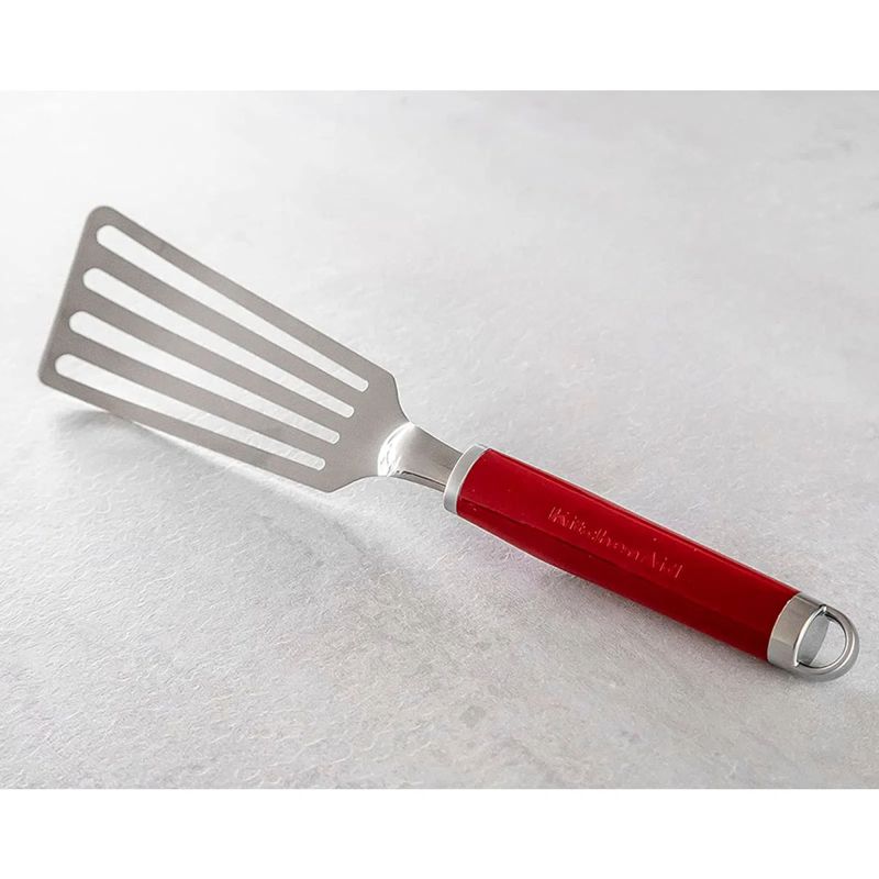 Espátula Flexível KitchenAid ideal para alimentos delicados. A cabeça superdimensionada é flexível e inclinada para deslizar facilmente sob os alimentos enquanto vira ou serve. - Características: • Escorrega sob alimentos delicados para um fácil manuseio;• Cabeça flexível em aço inox;• Seguro para lava-louças.