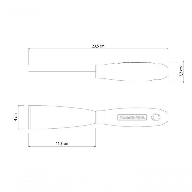 Espátula Rígida Tramontina 4cm Em Aço Carbono Cabo De MadeiraPara quem busca eficiência e praticidade na aplicação de materiais e acabamentos, a espátula rígida 4 cm Tramontina em aço carbono com cabo de madeira é uma excelente escolha. Ideal para raspagem de resíduos e aplicação de gesso, massa corrida, rejunte e outros materiais, também pode ser usada na criação de efeitos decorativos em paredes. Sua lâmina de 4 centímetros em aço carbono garante resistência e durabilidade, enquanto o cabo de madeira de origem renovável, com acabamento envernizado, proporciona conforto e um manuseio mais suave. Leve e robusta, é a ferramenta certa para otimizar seus projetos com a qualidade da Tramontina.Recomendações de Uso:Modo de uso: Utilizada na construção civil para raspagem de tinta, cimento e outros resíduos. Para descarte dos produtos e embalagens siga as orientações de reciclagem vigentes.- Foto meramente ilustrativa.Informações Adicionais:- Fabricada em aço carbono especial de alta qualidade;- A lâmina possui tamanho 4 cm e sua afiação proporciona excelente durabilidade do fio;- Produto leve, que gera menos esforço físico do usuário e proporciona maior produtividade;- O cabo desta ferramenta, além de possuir ótima resistência, é produzido com madeira de origem renovável;- Cabo com acabamento envernizado, para um melhor acabamento e apresentação do produto. A camada protetora em verniz incolor realça sua tonalidade, concedendo brilho e um toque mais liso ao produto.