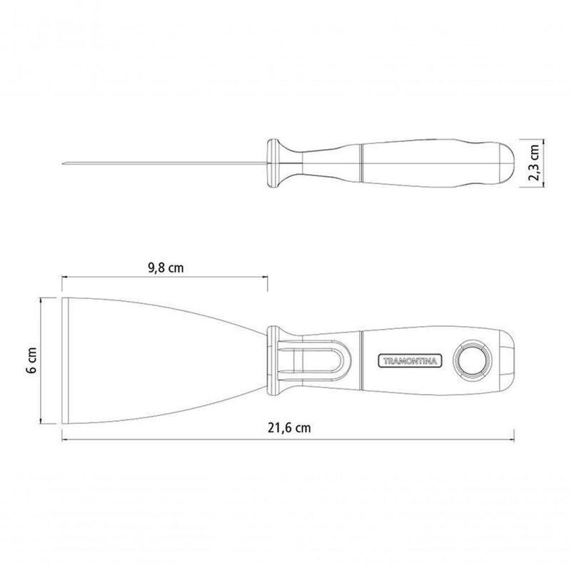 Espátula Rígida Tramontina 6cm Em Aço Carbono Cabo PlásticoA espátula rígida 6 cm Tramontina em aço carbono com cabo de polipropileno é a aliada certa para quem busca eficiência e praticidade em obras e reformas. Com lâmina de 6 centímetros em aço carbono, ela proporciona excelente resistência e durabilidade, sendo ideal para raspagem de resíduos e aplicação de gesso, massa corrida, rejunte e outros materiais. Seu cabo em polipropileno conta com formato ergonômico e ranhuras que garantem mais conforto e firmeza durante o uso. Leve e funcional, essa espátula oferece maior produtividade com menos esforço, além de ser uma excelente opção para trabalhos de acabamento e efeitos decorativos em paredes.Recomendações de Uso:Modo de uso: Utilizada na construção civil para raspagem de tinta, cimento e outros resíduos. Para descarte dos produtos e embalagens siga as orientações de reciclagem vigentes.- Foto meramente ilustrativa.Informações Adicionais:- Cabo produzido em polipropileno de alta resistência;- Fabricada em aço carbono especial de alta qualidade;- Produto leve, que gera menos esforço físico do usuário e proporciona maior produtividade;- A lâmina possui tamanho 6 cm e sua afiação proporciona excelente durabilidade do fio;- O cabo possui ranhuras e tem formato ergonômico, assegurando mais conforto durante o uso.