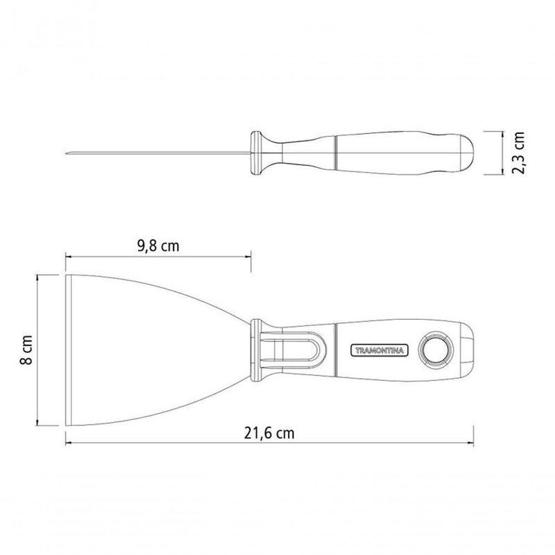 Espátula Rígida Tramontina 8cm Em Aço Carbono Cabo PlásticoA espátula rígida 8 cm Tramontina em aço carbono com cabo de polipropileno é a escolha ideal para quem busca eficiência e praticidade em obras e reformas. Com lâmina de 8 centímetros em aço carbono, ela oferece excelente resistência e durabilidade, sendo perfeita para raspagem de resíduos, aplicação de gesso, massa corrida, rejunte e também para criar efeitos decorativos em paredes. Seu cabo em polipropileno possui formato ergonômico e ranhuras que garantem uma pegada firme e confortável. Leve e funcional, essa espátula contribui para um trabalho mais produtivo e com menos esforço.Recomendações de Uso:Modo de uso: Utilizada na construção civil para raspagem de tinta, cimento e outros resíduos. Para descarte dos produtos e embalagens siga as orientações de reciclagem vigentes.- Foto meramente ilustrativa.Informações Adicionais:- Cabo produzido em polipropileno de alta resistência;- Fabricada em aço carbono especial de alta qualidade;- Produto leve, que gera menos esforço físico do usuário e proporciona maior produtividade;- A lâmina possui tamanho 8 cm e sua afiação proporciona excelente durabilidade do fio;- O cabo possui ranhuras e tem formato ergonômico, assegurando mais conforto durante o uso.