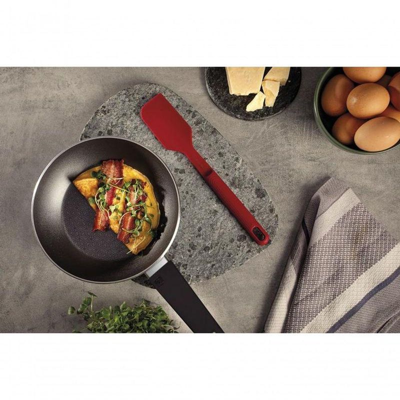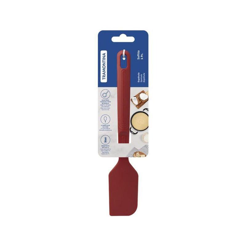 Espátula Tramontina Softta Vermelho De Silicone A espátula Tramontina Softta em silicone vermelho é uma aliada indispensável no preparo das refeições do dia a dia. Ideal para mexer, virar e servir alimentos sem danificar superfícies antiaderentes, ela suporta temperaturas de até 210 °C, garantindo ao manusear ingredientes quentes. A ponta ível alcança facilmente os cantos das panelas e tigelas, otimizando o aproveitamento dos alimentos. O cabo anatômico oferece conforto durante o uso, enquanto a limpeza prática,inclusive na lava-louça, facilita sua rotina. Com um visual marcante e acabamento moderno, é o toque certo de funcionalidade e cor para sua cozinha.Recomendações de Uso:Modo de uso: ;Antes da primeira utilização, lave bem a peça e seque-a. Não utilizar esponja abrasiva para limpeza e para maior durabilidade do produto recomenda-se secar bem antes de guardar, mesmo após lavagem em máquina. O produto pode sofrer alterações no aspecto visual ao longo do uso, em virtude da pigmentação dos alimentos e degradação natural da cor do utensílio. Não deixar o utensílio em superfícies quentes por tempo prolongado. Não armazenar o utensílio junto a materiais cortantes e perfurantes. Para descarte do produto e embalagem siga as orientações de reciclagem vigentes.- Foto meramente ilustrativa.Informações Adicionais:Espátula de silicone, que resiste até uma temperatura de 210 °C.Com furo passante no cabo possibilitando que seja pendurado na sua cozinha.Utensílio ideal para uso em panelas com revestimentos antiaderentes e cerâmicos, pois não danifica o produto.Pode ir à máquina de lavar louças facilitando seu dia a dia.
