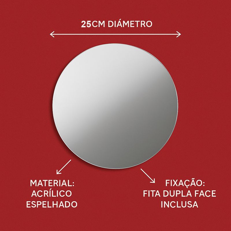 Transforme a decoração e a organização do seu espaço com o Espelho Decorativo Redondo em Acrílico 25cm. Versátil e leve, ele pode ser utilizado tanto como espelho de parede quanto como base expositora para joias, perfumes e pequenos objetos. Feito em acrílico espelhado de alta qualidade, garante reflexo nítido e moderno, além de ser mais seguro e prático que o vidro. Por ser leve, acompanha fita dupla face de alta fixação, que facilita a instalação sem furos na parede. Seu design redondo minimalista combina com qualquer ambiente: quartos, salas, lavabos, halls de entrada ou até em vitrines e lojas. Benefícios Fácil instalação com fita dupla face inclusa Leve e seguro em comparação ao vidro Versátil: pode ser usado na parede ou como base expositora Design redondo minimalista e elegante Especificações Técnicas Modelo: Espelho decorativo redondo Material: Acrílico espelhado Diâmetro: 25cm Fixação: Fita dupla face (inclusa) Uso: Parede ou base expositora Dicas de Uso Use na parede para ampliar ambientes pequenos. Utilize como base para joias e acessórios, criando composições sofisticadas. Para limpeza, use apenas pano macio e seco. Garantia Produto com garantia contra defeitos de fabricação.