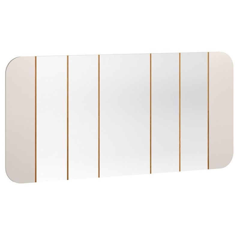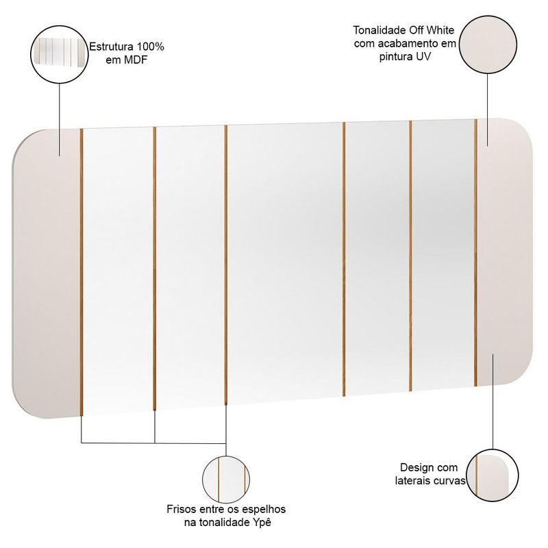 Com o Espelho Decorativo Verbena, da Lyam Decor, sua sala de jantar ganhará funcionalidade e elegância em um só produto. A moldura em MDF cuidadosamente projetada serve de apoio para esse espelho que não é apenas um item decorativo, mas uma verdadeira obra de arte que realça o ambiente. As linhas suaves e contornos curvos adicionam um charme especial, enquanto a estrutura robusta assegura durabilidade e estilo. Além disso, esse espelho orgânico reflete não só a beleza do seu espaço, como também amplia a luminosidade, tornando a sala de jantar mais acolhedora e convidativa. Em outras palavras, deixe que o Espelho Verbena se torne o destaque do seu décor e expresse a essência do seu estilo pessoal. Adicione ao seu carrinho! Dimensões total do produto (L x A x P) 152 x 75 x 3 cm Características: Estrutura 100% em MDF. Peças na tonalidade Off White e Ypê com acabamento em pintura UV. Design com laterais curvas e frisos entre os espelhos. Ideal para decoração de sala de jantar, sala de estar, hall de entrada e corredor. NÃO ACOMPANHA LUMINÁRIA LED. - Este produto deve ser limpo com pano macio e seco. Não utilize produtos abrasivos como álcool e detergente, assim como esponjas rígidas ou palha de aço. - Proteja a superfície do móvel de objetos que transmitam calor ou umidade. Observações importantes: - Produto para uso residencial em ambiente interno, não devendo ficar exposto diretamente ao sol, calor e umidade excessivos. - Pode haver alguma diferença de tonalidade entre a imagem e o produto real, por conta do tratamento de imagens e a calibração de cores do seu monitor. - As imagens são meramente ilustrativas, não acompanham objetos de decoração e eletrônicos. - Ao receber a mercadoria, o cliente deve verificar as condições da embalagem, caso haja alguma avaria não assine o comprovante de recebimento. - Montagem, desmontagem e outras instalações serão de responsabilidade do cliente. Não nos responsabilizamos, no ato da entrega, por subir escadas/elevadores ou pelo transporte por guincho em apartamentos. Eventuais despesas são de responsabilidade do comprador. - Confira as dimensões do produto e certifique-se de que passará normalmente por supostos elevadores, portas, escadas e/ou corredores de sua residência.