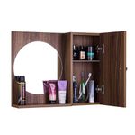 Espelho Redondo para Banheiro com Armário Madeira Escura