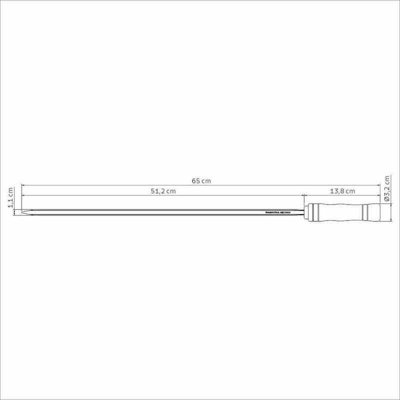 Espeto Para Churrasco Tramontina Inox Lâmina Cabo Madeira 65cmCom o Espeto para Churrasco Tramontina com Lâmina em Aço Inox e Cabo de Madeira 65 cm, o churrasco de domingo está garantido! Ele leva toda a qualidade e resistência do aço inox e ainda não enferruja! É fácil de limpar e perfeito para deixar o churrasco ainda mais saboroso!Recomendações de Uso:Antes do Uso: Remova as eventuais etiquetas e lave-o com água quente, detergente e esponja macia. Outros tipos de produto como palha de aço, poderão riscar ou prejudicar o acabamento da peça. Enxágue cada item a fim de remover totalmente os resíduos dos produtos de limpeza, que, por serem abrasivos, podem danificar o inox. Sempre que possível, use água quente, pois renova o brilho da peça.Modo de uso: Não guarde a peça em locais úmidos, a umidade também provoca manchas. Tenha cuidado ao manusear produtos cortantes e perfurantes e mantenha-os fora do alcance de crianças.- Foto meramente ilustrativa.Informações Adicionais:- Cabo de madeira natural;- Característica da Lâmina: Fina;- Lâmina em aço inox com 1,2 mm de espessura.