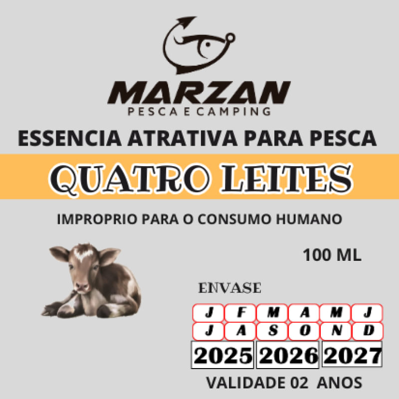 A Essência Atrativa para Pesca 4 Leites da Marzan foi desenvolvida para aumentar o poder de atração da sua iscas, tornando suas pescarias muito mais produtivas. Com uma combinação doce e cremosa inspirada em leite condensado, leite de coco, leite em pó e creme de leite, essa essência tem **alto poder de dispersão na água** e agrada especialmente peixes como **tilápia, tambaqui, pacu, carpa, piau e outros de médio a grande porte**. **Aroma marcante de 4 leites – irresistível para os peixes **Ideal para massas, farinhas, ração, iscas artificiais e naturais **Alta concentração – uma pequena quantidade e suficiente **Uso em água doce – pesqueiros, rios, lagos e represas **Produto da marca Marzan – qualidade e desempenho comprovados Especificações Técnicas: * Produto: Essência atrativa para pesca * Aroma: 4 Leites * Marca: Marzan * Tipo: Líquido concentrado * Indicação: Água doce (pesqueiros, lagos, rios) * Embalagem: Frasco com 100 ml * Aplicação: Misturar em iscas, massas e rações. **Dica de uso:** Adicione de 25 ml por quilo de massa ou 5 gotas diretamente na isca ou na água da massa para potencializar a atratividade. Aumente suas chances de fisgar grandes exemplares com as Essências da Marzan, a aliada perfeita para pescarias mais produtivas!
