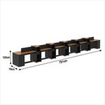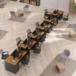 Estação De Trabalho 12 Lugares Office Tech 12 Mesas 10 Armár - Preto E Cedro Preto E CedroO Conjunto de Escritório Tech Office é compacto e funcional, ideal para ambientes profissionais e home office. Contando com sua Escrivaninha com passa fios e suporte para CPU, Buffet Aparador com 2 Portas e dobradiças metálicas e o Armário Livreiro compacto e funcional, com 3 nichos e 1 gaveta. Todos com tampo em MDF usinado e sapatas de PVC, unindo design moderno e praticidade. Confira a linha Tech completa em nossos anúncios e transforme seu espaço com inteligência e estilo!Especificações Técnicas do Conjunto de Escritório Tech Office:- Material: MDP/MDF;- Tampo: MDF usinado;- Acabamento: Pintura UV;- Produto Precisa de Montagem? Sim;- de Portas: 4;- de Gavetas: 10;- de Prateleiras: 10;- Puxadores: PVC;- Dobradiças: Metálicas;- Pés: Sapatas Fixas de PVC;- Instruções de Cuidado: Limpar com pano levemente umedecido;- Medidas do Livreiro (Altura x Largura x Profundidade): 99,5 x 33,4 x 28,5 cm;- Medidas da Escrivaninha (Altura x Largura x Profundidade): 73,5 x 91 x 38,4 cm;- Medidas do Aparador (Altura x Largura x Profundidade): 73,5 x 76,6 x 38,4 cm;- Conteúdo da Embalagem: 12 Escrivaninha, 10 Livreiro, 02 Aparador e 03 Kit Divisórias - Entregue em: 27 Volumes.Observações Importantes:Produto não deve ficar exposto diretamente ao sol, calor e umidades excessivas.Recomendações de Limpeza: Utilize somente pano seco ou levemente umedecido.Imagens meramente ilustrativas, produto não acompanha objetos de decoração e eletrônicos.Ao receber, verifique a embalagem. Se detectar ou violação na mesma, recuse o e nos contate.Não nos responsabilizamos pela montagem e por problemas causados pela montagem realizada por você ou montador contratado.Enfatizamos a recomendação aos nossos clientes de contratar um montador .Eventualmente, se faltar qualquer peça ou acessório no produto, nos contate e enviaremos a peça/acessório sem custo adicional. Altura da Mesa (cm): 74cm | Altura do Armário (cm): 99cm | Altura do Aparador (cm): 74cm | Largura da Mesa (cm): 91cm | Largura do Armário (cm): 33cm | Largura do Aparador (cm): 77cm | Profundidade da Mesa (cm): 38cm | Profundidade do Armário (cm): 28cm | Profundidade do Aparador (cm): 38cm | Altura dos Pés (cm): Não se aplica | Ambiente Principal: Escritório | Complexidade da Montagem: Média: pode ser montado por mais de uma pessoa e/ou necessite de maior conhecimento para montagem | Cor do Produto: Off White/Cedro | Cor Predominante: Off White | Cor Interna: Off White | Acabamento: Pintura UV | Acabamento da Gaveta: Pintura UV | Acabamento dos Pés: PVC | Escala de Brilho: Fosco | Escala de Brilho da Gaveta: Fosco | Garantia: 3 meses | Bandeja: Não | Estilo: Moderno | Itens Inclusos: 12 Mesa, 10 Armário, 2 Aparador, Manual de Montagem e Kits de Montagem | Linha ou Coleção: Tech | Inclui manual de montagem: Sim | Possui Portas: Sim | Possui Rodízio: Não | Marca: ViaNossa | Material da Gaveta: MDP/MDF | Material dos Pés: PVC | Cor: Preto e Cedro