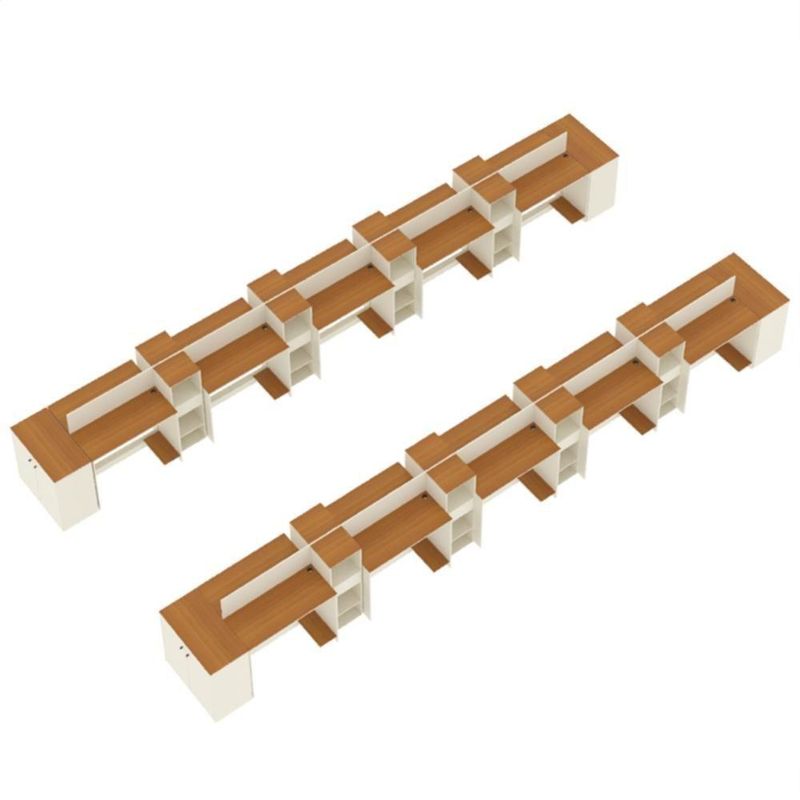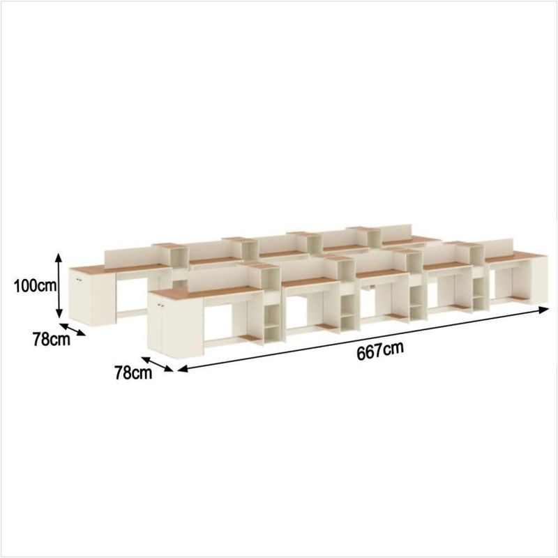 Estação De Trabalho 20 Lugares Office Tech 20 Mesas 16 Armár - Off White E Cedro Off White E CedroO Conjunto de Escritório Tech Office é compacto e funcional, ideal para ambientes profissionais e home office. Contando com sua Escrivaninha com passa fios e suporte para CPU, Buffet Aparador com 2 Portas e dobradiças metálicas e o Armário Livreiro compacto e funcional, com 3 nichos e 1 gaveta. Todos com tampo em MDF usinado e sapatas de PVC, unindo design moderno e praticidade. Confira a linha Tech completa em nossos anúncios e transforme seu espaço com inteligência e estilo!Especificações Técnicas do Conjunto de Escritório Tech Office:- Material: MDP/MDF;- Tampo: MDF usinado;- Acabamento: Pintura UV;- Produto Precisa de Montagem? Sim;- de Portas: 8;- de Gavetas: 16;- de Prateleiras: 16;- Puxadores: PVC;- Dobradiças: Metálicas;- Pés: Sapatas Fixas de PVC;- Instruções de Cuidado: Limpar com pano levemente umedecido;- Medidas do Livreiro (Altura x Largura x Profundidade): 99,5 x 33,4 x 28,5 cm;- Medidas da Escrivaninha (Altura x Largura x Profundidade): 73,5 x 91 x 38,4 cm;- Medidas do Aparador (Altura x Largura x Profundidade): 73,5 x 76,6 x 38,4 cm;- Conteúdo da Embalagem: 20 Escrivaninha, 16 Livreiro, 04 Aparador e 05 Kit Divisórias - Entregue em: 45 Volumes.Observações Importantes:Produto não deve ficar exposto diretamente ao sol, calor e umidades excessivas.Recomendações de Limpeza: Utilize somente pano seco ou levemente umedecido.Imagens meramente ilustrativas, produto não acompanha objetos de decoração e eletrônicos.Ao receber, verifique a embalagem. Se detectar ou violação na mesma, recuse o e nos contate.Não nos responsabilizamos pela montagem e por problemas causados pela montagem realizada por você ou montador contratado.Enfatizamos a recomendação aos nossos clientes de contratar um montador .Eventualmente, se faltar qualquer peça ou acessório no produto, nos contate e enviaremos a peça/acessório sem custo adicional. Altura da Mesa (cm): 74cm | Altura do Armário (cm): 99cm | Altura do Aparador (cm): 74cm | Largura da Mesa (cm): 91cm | Largura do Armário (cm): 33cm | Largura do Aparador (cm): 77cm | Profundidade da Mesa (cm): 38cm | Profundidade do Armário (cm): 28cm | Profundidade do Aparador (cm): 38cm | Altura dos Pés (cm): Não se aplica | Ambiente Principal: Escritório | Complexidade da Montagem: Média: pode ser montado por mais de uma pessoa e/ou necessite de maior conhecimento para montagem | Cor do Produto: Off White/Cedro | Cor Predominante: Off White | Cor Interna: Off White | Acabamento: Pintura UV | Acabamento da Gaveta: Pintura UV | Acabamento dos Pés: PVC | Escala de Brilho: Fosco | Escala de Brilho da Gaveta: Fosco | Garantia: 3 meses | Bandeja: Não | Estilo: Moderno | Itens Inclusos: 20 Mesa, 16 Armário, 4 Aparador, Manual de Montagem e Kits de Montagem | Linha ou Coleção: Tech | Possui Portas: Sim | Inclui manual de montagem: Sim | Possui Rodízio: Não | Marca: ViaNossa | Material da Gaveta: MDP/MDF | Material dos Pés: PVC | Cor: Off White e Cedro