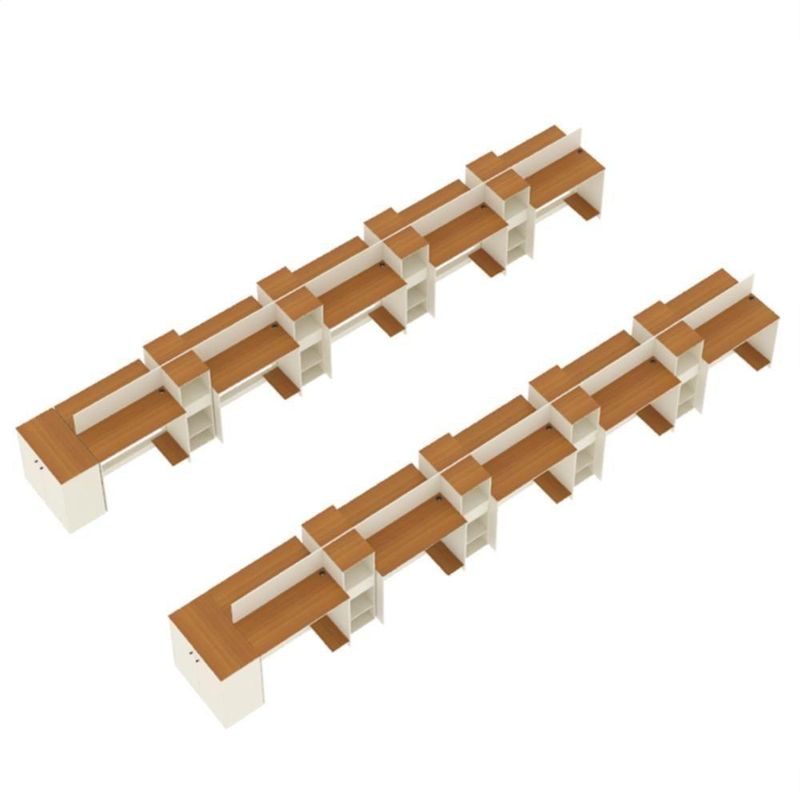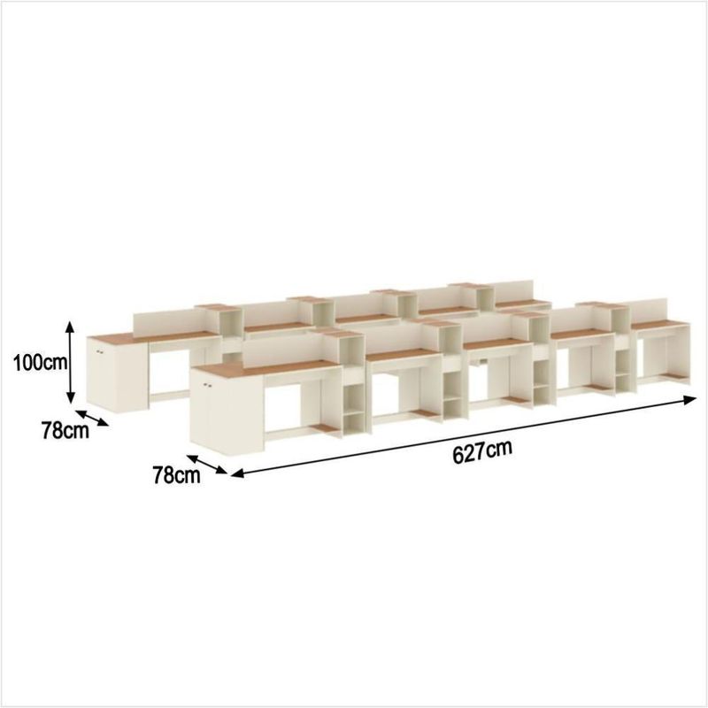 Estação De Trabalho 20 Lugares Office Tech 20 Mesas 16 Armár - Off White E Cedro Off White E CedroO Conjunto de Escritório Tech Office é compacto e funcional, ideal para ambientes profissionais e home office. Contando com sua Escrivaninha com passa fios e suporte para CPU, Buffet Aparador com 2 Portas e dobradiças metálicas e o Armário Livreiro compacto e funcional, com 3 nichos e 1 gaveta. Todos com tampo em MDF usinado e sapatas de PVC, unindo design moderno e praticidade. Confira a linha Tech completa em nossos anúncios e transforme seu espaço com inteligência e estilo!Especificações Técnicas do Conjunto de Escritório Tech Office:- Material: MDP/MDF;- Tampo: MDF usinado;- Acabamento: Pintura UV;- Produto Precisa de Montagem? Sim;- de Portas: 4;- de Gavetas: 16;- de Prateleiras: 16;- Puxadores: PVC;- Dobradiças: Metálicas;- Pés: Sapatas Fixas de PVC;- Instruções de Cuidado: Limpar com pano levemente umedecido;- Medidas do Livreiro (Altura x Largura x Profundidade): 99,5 x 33,4 x 28,5 cm;- Medidas da Escrivaninha (Altura x Largura x Profundidade): 73,5 x 91 x 38,4 cm;- Medidas do Aparador (Altura x Largura x Profundidade): 73,5 x 76,6 x 38,4 cm;- Conteúdo da Embalagem: 20 Escrivaninha, 16 Livreiro, 02 Aparador e 05 Kit Divisórias - Entregue em: 43 Volumes.Observações Importantes:Produto não deve ficar exposto diretamente ao sol, calor e umidades excessivas.Recomendações de Limpeza: Utilize somente pano seco ou levemente umedecido.Imagens meramente ilustrativas, produto não acompanha objetos de decoração e eletrônicos.Ao receber, verifique a embalagem. Se detectar ou violação na mesma, recuse o e nos contate.Não nos responsabilizamos pela montagem e por problemas causados pela montagem realizada por você ou montador contratado.Enfatizamos a recomendação aos nossos clientes de contratar um montador .Eventualmente, se faltar qualquer peça ou acessório no produto, nos contate e enviaremos a peça/acessório sem custo adicional. Altura da Mesa (cm): 74cm | Altura do Armário (cm): 99cm | Altura do Aparador (cm): 74cm | Largura da Mesa (cm): 91cm | Largura do Armário (cm): 33cm | Largura do Aparador (cm): 77cm | Profundidade da Mesa (cm): 38cm | Profundidade do Armário (cm): 28cm | Profundidade do Aparador (cm): 38cm | Altura dos Pés (cm): Não se aplica | Ambiente Principal: Escritório | Complexidade da Montagem: Média: pode ser montado por mais de uma pessoa e/ou necessite de maior conhecimento para montagem | Cor do Produto: Off White/Cedro | Cor Predominante: Off White | Cor Interna: Off White | Acabamento: Pintura UV | Acabamento da Gaveta: Pintura UV | Acabamento dos Pés: PVC | Escala de Brilho: Fosco | Escala de Brilho da Gaveta: Fosco | Garantia: 3 meses | Bandeja: Não | Estilo: Moderno | Itens Inclusos: 20 Mesa, 16 Armário, 2 Aparador, Manual de Montagem e Kits de Montagem | Linha ou Coleção: Tech | Inclui manual de montagem: Sim | Possui Portas: Sim | Possui Rodízio: Não | Marca: ViaNossa | Material da Gaveta: MDP/MDF | Material dos Pés: PVC | Cor: Off White e Cedro
