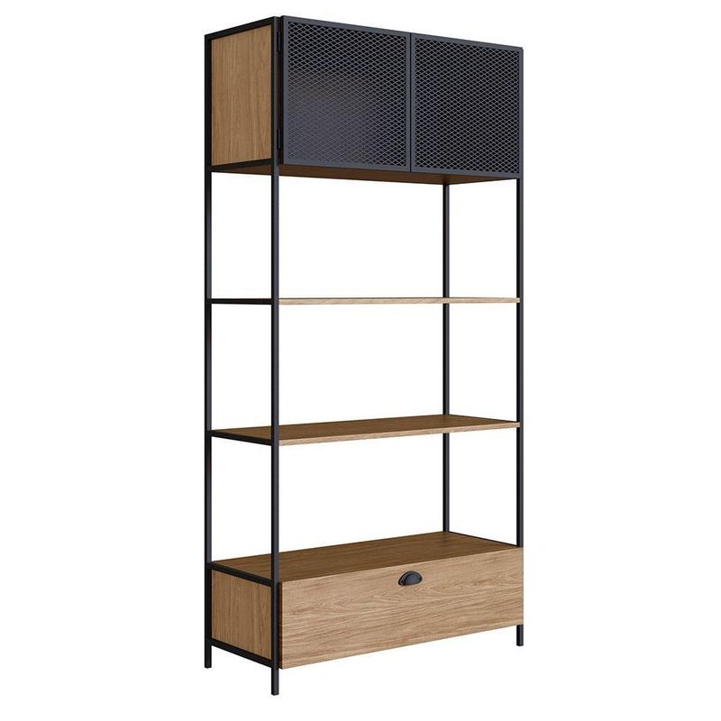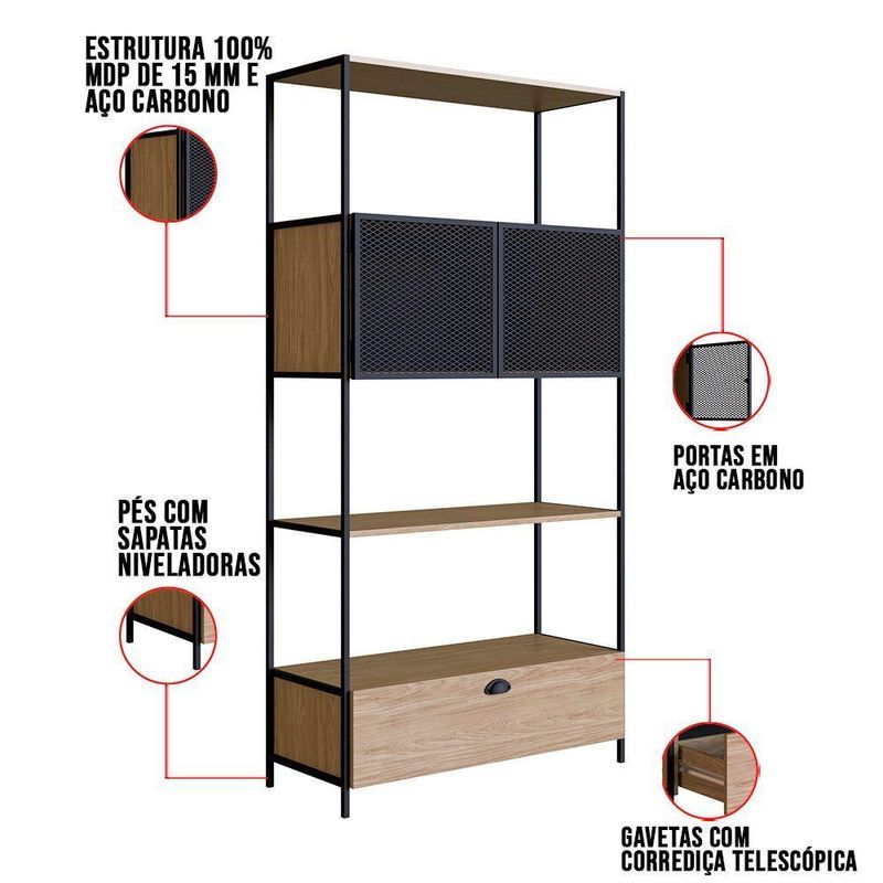 Estante 01 Porta New 180 Cm Hanover E Preto - D'rossi Com a Estante New na cor Hanover e Preto você garante personalidade e praticidade, e na hora de decorar você pode abusar da sua criatividade e fazer do jeito que achar melhor. Produzido em MDP 15mm com acabamento em BP, contém 01 porta é em aço com detalhes de chapa expandida, acabamento em pintura epóxi fosca e fecho magnético, 01 gaveta com puxador metálico e corrediça telescópica com extração total. Seu ambiente ficará bem mais bonito com a estante New. Escolha a sua.Dimensões:Altura total:180 cmLargura total:47 cmProfundidade total:38 cmPeso:21 kgEspecificações do ProdutoEstrutura:MDP 15mm e Aço TramaPossui Nichos:Não possuiPossui Portas:Sim, 1 PortaPossui Gavetas:Sim, 1 GavetaPossui Vidro:Não possuiPossui EspelhoNão possuiPossui Rodízo:Não possuiPossui Adega:Não possuiEscala de Brilho:FoscoAcabamento:BP (Baixa Pressão), Acabamentos Detalhados e Texturas EspeciaisPeso Suportado:Até 30kgCor:Hanover e PretoGarantia:90 dias contra defeito de fabricaçãoNecessita Montagem:SimComplexidade da Montagem:Média - É recomendado que seja feita por alguém com experiência em montagem de móveisInstruções de limpeza:Limpar utilizando apenas pano umedecido com água, nunca utilizar produtos químicos ou abrasivos, pois estes danificam o revestimento do móvel.Você irá receber:01 VolumeItens Inclusos:1 Estante, Ferragens e Manual para montagemObservações Relevantes- Todos os produtos vão embalados com total segurança;- As cores dos produtos podem sofrer alterações dependendo do seu monitor;- Para futuras compras, não garantimos a mesma tonalidade de cor, pois existe variação a cada lote do fabricante do tecido;- As imagens são meramente ilustrativas, não acompanham objetos de decoração e eletros;- Confira as dimensões do produto no momento da compra e certifique-se de que passará normalmente por escadas, elevadores, portas e corredores;- Importante: Por se tratar de estofado as medidas podem ter uma pequena variação em até 3 cm;- Não nos responsabilizamos no ato da entrega por montagens, desmontagens, instalações de produtos;- Não nos responsabilizamos no ato da entrega por subir escadas, elevadores, nem utilização de guinchos ou equipamentos similares para acesso a pisos superiores em apartamentos;- A entrega do produto é realizada em todo território nacional, até onde as rodovias alcançam, entregas fluviais ou aéreas devem ser cotadas a parte;- Observando as orientações acima, evita-se futuros desagrados ou imprevistos com a entrega do produto. Havendo despesas adicionais, serão de responsabilidade do cliente;