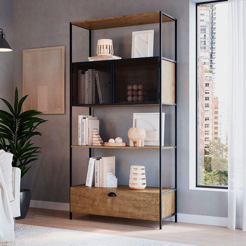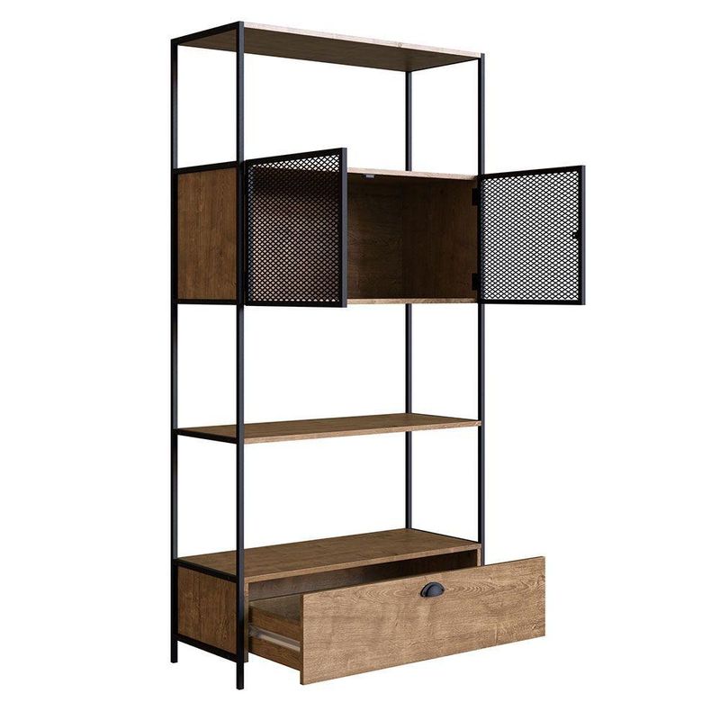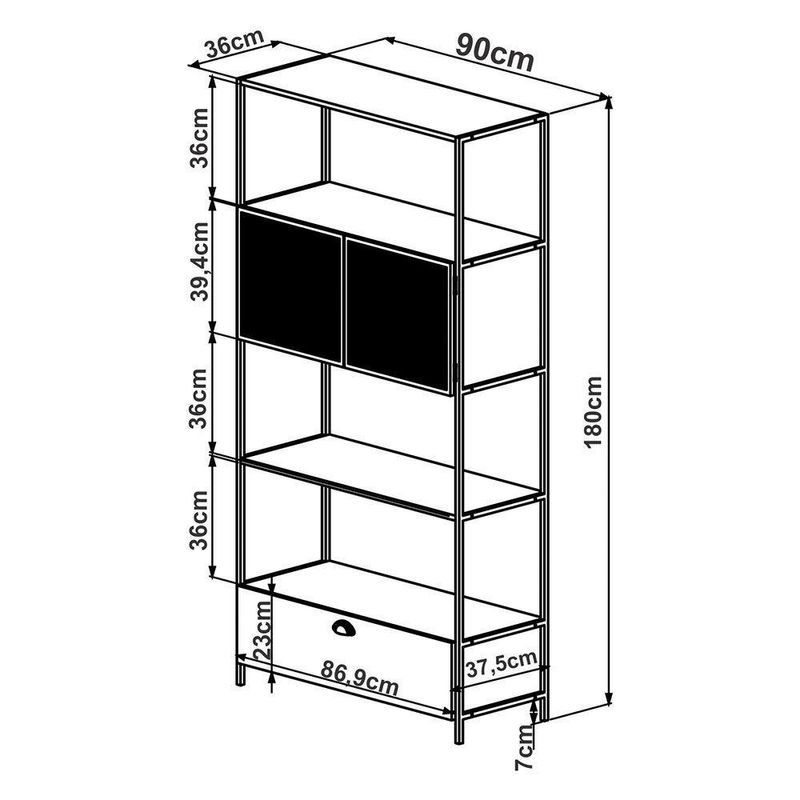 Estante 01 Porta New 180 Cm Vermont E Preto - D'rossi Com a Estante New na cor Vermont e Preto você garante personalidade e praticidade, e na hora de decorar você pode abusar da sua criatividade e fazer do jeito que achar melhor. Produzido em MDP 15mm com acabamento em BP, contém 01 porta é em aço com detalhes de chapa expandida, acabamento em pintura epóxi fosca e fecho magnético, 01 gaveta com puxador metálico e corrediça telescópica com extração total. Seu ambiente ficará bem mais bonito com a estante New. Escolha a sua.Dimensões:Altura total:180 cmLargura total:47 cmProfundidade total:38 cmPeso:21 kgEspecificações do ProdutoEstrutura:MDP 15mm e Aço TramaPossui Nichos:Não possuiPossui Portas:Sim, 1 PortaPossui Gavetas:Sim, 1 GavetaPossui Vidro:Não possuiPossui EspelhoNão possuiPossui Rodízo:Não possuiPossui Adega:Não possuiEscala de Brilho:FoscoAcabamento:BP (Baixa Pressão), Acabamentos Detalhados e Texturas EspeciaisPeso Suportado:Até 30kgCor:Vermont e PretoGarantia:90 dias contra defeito de fabricaçãoNecessita Montagem:SimComplexidade da Montagem:Média - É recomendado que seja feita por alguém com experiência em montagem de móveisInstruções de limpeza:Limpar utilizando apenas pano umedecido com água, nunca utilizar produtos químicos ou abrasivos, pois estes danificam o revestimento do móvel.Você irá receber:01 VolumeItens Inclusos:1 Estante, Ferragens e Manual para montagemObservações Relevantes- Todos os produtos vão embalados com total segurança;- As cores dos produtos podem sofrer alterações dependendo do seu monitor;- Para futuras compras, não garantimos a mesma tonalidade de cor, pois existe variação a cada lote do fabricante do tecido;- As imagens são meramente ilustrativas, não acompanham objetos de decoração e eletros;- Confira as dimensões do produto no momento da compra e certifique-se de que passará normalmente por escadas, elevadores, portas e corredores;- Importante: Por se tratar de estofado as medidas podem ter uma pequena variação em até 3 cm;- Não nos responsabilizamos no ato da entrega por montagens, desmontagens, instalações de produtos;- Não nos responsabilizamos no ato da entrega por subir escadas, elevadores, nem utilização de guinchos ou equipamentos similares para acesso a pisos superiores em apartamentos;- A entrega do produto é realizada em todo território nacional, até onde as rodovias alcançam, entregas fluviais ou aéreas devem ser cotadas a parte;- Observando as orientações acima, evita-se futuros desagrados ou imprevistos com a entrega do produto. Havendo despesas adicionais, serão de responsabilidade do cliente;
