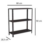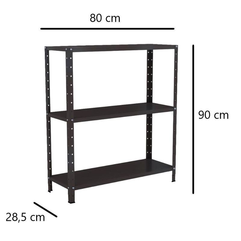 Estante Aço 3 Prateleiras Livros Cozinha Quarto Eaf007 PretoEstante de Aço EAF007ESTANTE DE AÇO MULTIUSO 03 PRATELEIRAS EAF006A Estante de Aço Multiuso 03 Prateleiras EAF007 foi desenvolvida em aço de alta qualidade, garantindo maior robustez e máxima resistência à sua estrutura, tornando seu tempo de vida útil muito mais elevado. Sua pintura, em tinta eletrostática epóxi, proporciona mais proteção a ela. É perfeita para a organização e embelezamento do seu ambiente.Ela é composta por 03 prateleiras reguláveis. Super resistente, suporta até 30Kg bem distribuídos por prateleira. Possui sapatas plásticas para um perfeito acabamento e evitando assim riscos no piso.Características do Produto- Quantidade de prateleiras: 03- Chapa das prateleiras: #26 (0,45mm)- Chapa das colunas: #20 (0,90mm)- Dimensões (ALP/cm): 90 x 80 x 28,5- Pintura: Epóxi Eletrostática- Peso suportado: 30Kg por prateleiraConteúdo da Embalagem:- 04 Colunas- 03 Bandejas- 04 Sapatas L- 01 Kit de montagemGARANTIAS:- Garantia de 03 meses de fábrica contra defeitos de fabricação- Garantia extra de +03 meses da loja contra eventuais defeitos de fabricaçãoImportante: Este produto é entregue desmontado, junto ao manual de instruções e todos os acessórios necessários para seu perfeito encaixe e uso. Indicamos que você contrate um profissional especializado para sua montagem; Certifique-se de que todas as características do produto atendem sua necessidade antes de efetuar a compra, desta forma garantimos que você irá adquirir um excelente artigo que possa usufruir; Lembre-se de que as imagens do anúncio são ilustrativas, podendo suas cores ter variações em razão do monitor ou da luz.A Estante de Aço Multiuso EAF007 é fabricada pela Elite Aço, indústria de móveis de aço e tubular presente no mercado há mais de duas décadas, oferecendo produtos inovadores de alta qualidade e estilo para atender as necessidades de seus clientes.