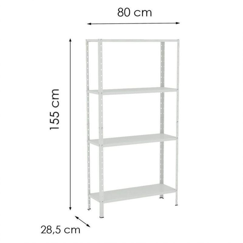Estante Aço 4 Prateleiras Livros Cozinha Quarto Eaf006 BrancaEstante de Aço EAF006 ESTANTE DE AÇO MULTIUSO 04 PRATELEIRAS EAF006A Estante de Aço Multiuso 04 Prateleiras EAF006 foi desenvolvida em aço de alta qualidade, garantindo maior robustez e máxima resistência à sua estrutura, tornando seu tempo de vida útil muito mais elevado. Sua pintura, em tinta eletrostática epóxi, proporciona mais proteção a ela. É perfeita para a organização e embelezamento do seu ambiente.Ela é composta por 04 prateleiras reguláveis. Super resistente, suporta até 30Kg bem distribuídos por prateleira. Possui sapatas plásticas para um perfeito acabamento e evitando assim riscos no piso.Características do Produto- Quantidade de prateleiras: 04- Chapa das prateleiras: #26 (0,45mm)- Chapa das colunas: #20 (0,90mm)- Dimensões (ALP/cm): 155 x 80 x 28,5- Pintura: Epóxi Eletrostática- Peso suportado: 30Kg por prateleiraConteúdo da Embalagem:- 08 Colunas- 04 Bandejas- 08 Sapatas L- 01 Kit de montagemGARANTIAS:- Garantia de 03 meses de fábrica contra defeitos de fabricação- Garantia extra de +03 meses da loja contra eventuais defeitos de fabricaçãoImportante: Este produto é entregue desmontado, junto ao manual de instruções e todos os acessórios necessários para seu perfeito encaixe e uso. Indicamos que você contrate um profissional especializado para sua montagem; Certifique-se de que todas as características do produto atendem sua necessidade antes de efetuar a compra, desta forma garantimos que você irá adquirir um excelente artigo que possa usufruir; Lembre-se de que as imagens do anúncio são ilustrativas, podendo suas cores ter variações em razão do monitor ou da luz.A Estante de Aço Multiuso EAF006 é fabricada pela Elite Aço, indústria de móveis de aço e tubular presente no mercado há mais de duas décadas, oferecendo produtos inovadores de alta qualidade e estilo para atender as necessidades de seus clientes.