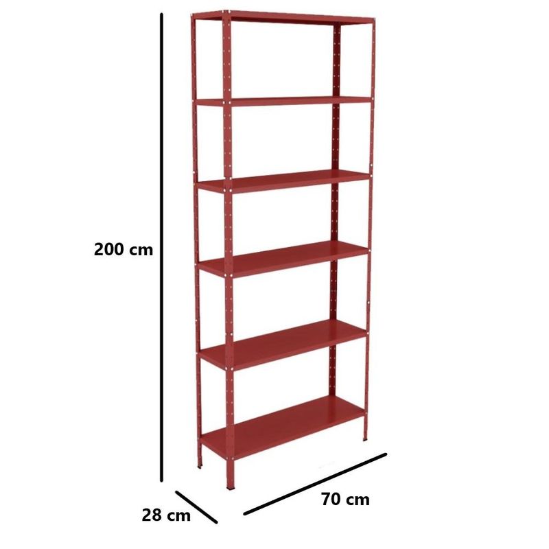 Estante Aço 6 Prateleiras Livros Cozinha Quarto Eaf013 VermelhoEstante de Aço EAF013ESTANTE DE AÇO MULTIUSO 06 PRATELEIRAS EAF013A Estante de Aço Multiuso 06 Prateleiras EAF013 foi desenvolvida em aço de alta qualidade, garantindo maior robustez e máxima resistência à sua estrutura, tornando seu tempo de vida útil muito mais elevado. Sua pintura, em tinta eletrostática epóxi, proporciona mais proteção a ela. É perfeita para a organização e embelezamento do seu ambiente.Ela é composta por 06 prateleiras reguláveis. Super resistente, suporta até 30Kg bem distribuídos por prateleira. Possui sapatas plásticas para um perfeito acabamento e evitando assim riscos no piso.Características do Produto- Quantidade de prateleiras: 06- Chapa das prateleiras: #26 (0,45mm)- Chapa das colunas: #20 (0,90mm)- Dimensões (ALP/cm): 200 x 70 x 28- Pintura: Epóxi Eletrostática- Peso suportado: 30Kg por prateleiraConteúdo da Embalagem:- 12 Colunas- 06 Bandejas- 08 Sapatas L- 01 Kit de montagem completoGARANTIAS:- Garantia de 03 meses de fábrica contra defeitos de fabricação- Garantia extra de +03 meses da loja contra eventuais defeitos de fabricaçãoImportante: Este produto é entregue desmontado, junto ao manual de instruções e todos os acessórios necessários para seu perfeito encaixe e uso. Indicamos que você contrate um profissional especializado para sua montagem; Certifique-se de que todas as características do produto atendem sua necessidade antes de efetuar a compra, desta forma garantimos que você irá adquirir um excelente artigo que possa usufruir; Lembre-se de que as imagens do anúncio são ilustrativas, podendo suas cores ter variações em razão do monitor ou da luz.A Estante de Aço Multiuso EAF013 é fabricada pela Elite Aço, indústria de móveis de aço e tubular presente no mercado há mais de duas décadas, oferecendo produtos inovadores de alta qualidade e estilo para atender as necessidades de seus clientes.