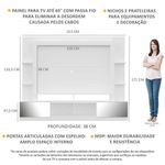 O Rack com Painel 65" e 2 Portas com Espelho Oslo Multimóveis é perfeito para você deixar seu ambiente organizado e muito bem decorado. Produzido em MDP, que garante maior durabilidade e facilidade na limpeza, além de um acabamento superior, possui 2 portas articuladas com um excelente espaço interno para organizar seus pertences, prateleiras para que você possa personalizar a decoração e nichos para acomodar todos os equipamentos eletrônicos. Os detalhes com espelhos nas portas deixam o móvel mais requintado, criando um ambiente moderno e charmoso. Os espelhos são de vidro (o que evita que a imagem fique distorcida) e lapidados, ou seja, passam por um processo para que as bordas não fiquem cortantes, o que garante maior . O painel para de até 65” (suporta até 30kg) possui espaçamento para passagem dos fios, que permite deixar os cabos mais organizados. Uma sala de estar moderna, aconchegante e linda para receber os amigos e curtir os melhores filmes e séries. Conteúdo da Embalagem:1 (uma) estante1 (um) kit com 2 (dois) espelhosDimensões do produto montado:Altura: 171cm | Largura: 213cm | Profundidade: 38cmPainel - Altura: 98cm | Largura: 150cm*Devido as variações de tamanho dos televisores no mercado, sugerimos que verifique as medidas da sua e compare com o painel antes de efetuar a compra.*Você pode consultar as medidas internas na imagem técnica do produto.*As cores do produto podem sofrer variações de tonalidade de acordo com as configurações do seu dispositivo.Imagem meramente ilustrativa. Decoração e eletros não acompanham o produto. O produto será entregue desmontado e não disponibilizamos o de montagem.