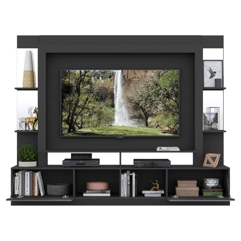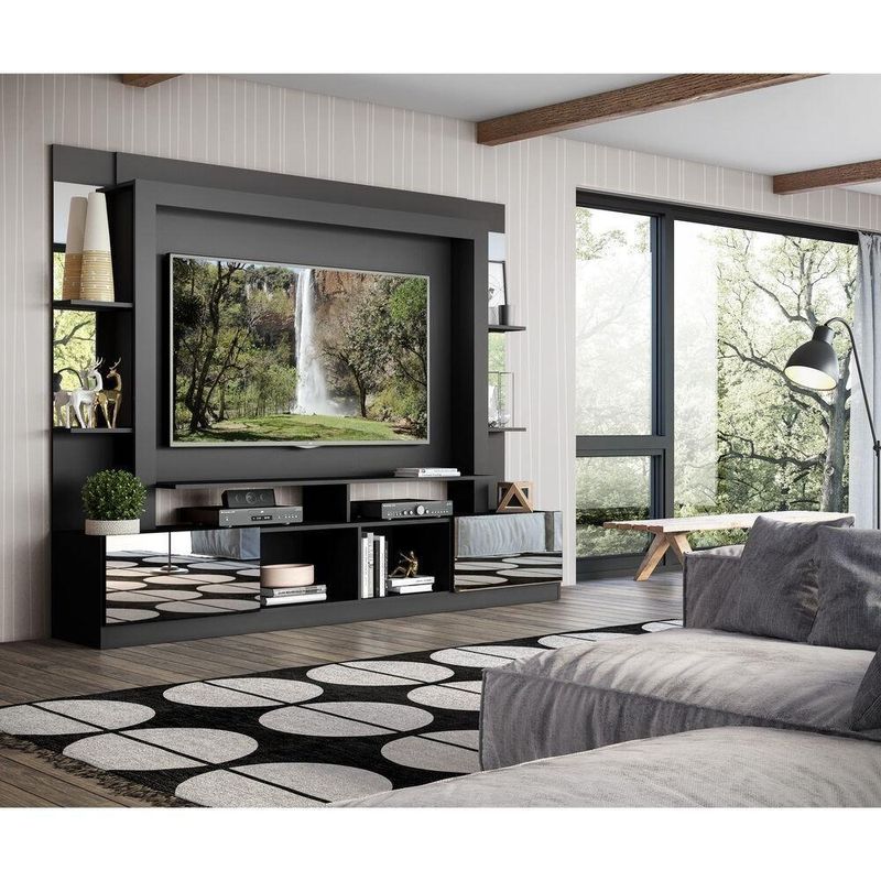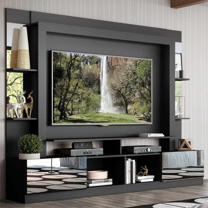 A Estante com Suporte 65" e Espelho Oslo Multimóveis é perfeita para você deixar seu ambiente organizado e muito bem decorado. Produzida em MDP, que garante maior durabilidade e facilidade na limpeza, além de um acabamento superior, possui 2 portas articuladas com um excelente espaço interno para organizar seus pertences, prateleiras para que você possa personalizar a decoração e nichos para acomodar todos os equipamentos. Os detalhes com espelhos nas portas e prateleiras deixam o móvel mais requintado, criando um ambiente moderno e charmoso. Os espelhos são de vidro (o que evita que a imagem fique distorcida) e lapidados, ou seja, passam por um processo para que as bordas não fiquem cortantes, o que garante maior segurança. O painel com suporte para de até 65” (suporta até 30kg) possui espaçamento para passagem dos fios, que permite deixar os cabos mais organizados. Para facilitar a sua vida, este produto acompanha também o kit para fixação da . Muito prático e de fácil instalação, pode ser utilizado para ’s LCD, LED e plasma de 14” a 71”. Totalmente sobreposto, acompanha gabarito de montagem que auxilia na instalação. Conta com um sistema de encaixe rápido, possui 16mm de deslocamento que permite o ajuste do encaixe das peças. Conteúdo da Embalagem:1 (uma) estante1 (um) kit com suporte 1 (um) kit com 2 (dois) espelhos1 (um) kit com 4 (quatro) espelhosDimensões do produto montado:Altura: 171cm | Largura: 213cm | Profundidade: 38cmPainel - Altura: 98cm | Largura: 150cm*Devido as variações de tamanho dos televisores no mercado, sugerimos que verifique as medidas da sua e compare com o painel antes de efetuar a compra.*Você pode consultar as medidas internas na imagem técnica do produto.*As cores do produto podem sofrer variações de tonalidade de acordo com as configurações do seu dispositivo.Imagem meramente ilustrativa. Decoração e eletros não acompanham o produto. O produto será entregue desmontado e não disponibilizamos o serviço de montagem.