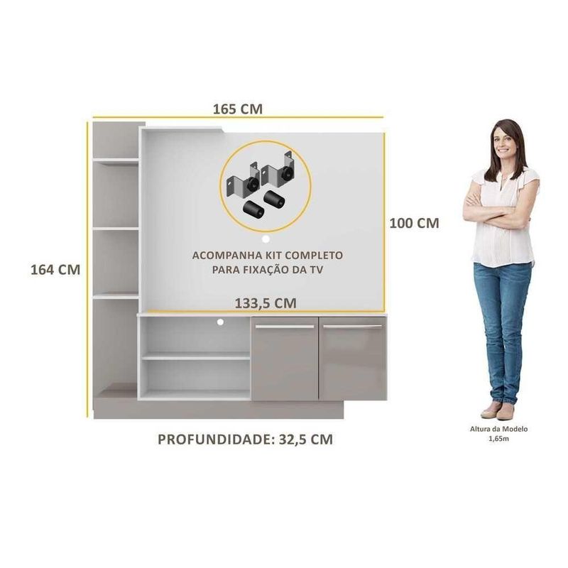 Não tem nada melhor do que um ambiente bonito e organizado para receber as visitas, não é mesmo?Com a Estante Home Theater com Suporte para até 55'' Denver Multimóveis, você vai deixar sua sala completa, enriquecendo ainda mais a decoração.Produzido em MDP com pintura UV, que garante maior durabilidade e resistência, possui painel para de até 55” com espaçamento para a passagem dos fios, o que deixa um visual mais clean e os cabos organizados. Possui prateleiras que podem ser utilizadas para artigos decorativos e/ou equipamentos e 2 portas com um amplo espaço interno para manter seus pertences organizados.Para facilitar a sua vida, este produto acompanha também o kit para fixação da . Muito prático e de fácil instalação, pode ser utilizado para ’s LCD, LED e plasma de 14” a 71”. Totalmente sobreposto, acompanha gabarito de montagem que auxilia na instalação. Conta com um sistema de encaixe rápido, possui 16mm de deslocamento que permite o ajuste do encaixe das peças.No mercado moveleiro desde 1995, a Multimóveis utiliza tecnologia de ponta e se diferencia através do acabamento superior, demonstrando o cuidado e carinho na fabricação dos móveis. Utilizamos matéria-prima de madeira proveniente de reflorestamento, que contribui para a preservação do meio ambiente.Tamanho Painel : 133,5 x 100cmDevido as variações de tamanho dos televisores no mercado, sugerimos que verifique as medidas da sua e compare com o painel antes de efetuar a compra.Dimensões do produto montado - Altura: 164cm | Largura: 165cm | Profundidade: 32,5 cmDisponível em 5 opções de cores: Branco/Argila - Duna/Preto - Argila/Branco - Branco/Lacca Fumê - Preto/Lacca Fume.As cores do produto podem sofrer variações de tonalidade de acordo com as configurações do seu dispositivo.Imagem meramente ilustrativa. Decoração não acompanha o produto. - acompanha e certificado de garantia.