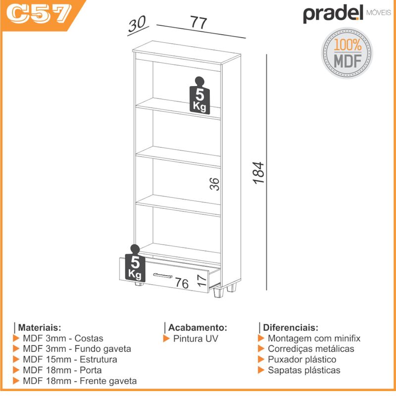 Design moderno e funcional, esta estante decorativa é perfeita para exibir e organizar seus livros favoritos. Fabricada com MDF robusto no acabamento Freijó C57, combina durabilidade com elegância, tornando-se uma peça destacável em qualquer espaço. Seu formato vertical aproveita ao máximo o espaço, tornando-a ideal para ambientes compactos ou amplos. Adicione um toque de sofisticação e ordem ao seu ambiente com a Estante Decorativa para Livros da Dalla Costa.