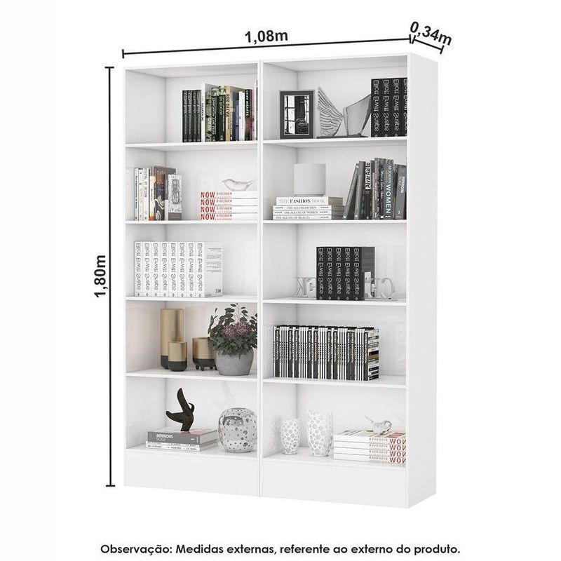 Estante Duda 10 Prateleiras Em Mdp 108cm Carioca Móveis BrancoA Estante Duda e a escolha ideal para quem busca otimizar espacos e manter a casa sempre organizada. Seu design funcional permite que os livros fiquem sempre a vista, facilitando a limpeza e evitando o acumulo de residuos. Versatil, pode ser utilizada em diferentes ambientes como quarto, closet ou hall de entrada, oferecendo praticidade no dia a dia e contribuindo para um ambiente mais organizado e harmonioso.Caracteristicas Estante Modelo Duda Marca Carioca Moveis Material em MDP Estante com 10 prateleiras Indicada para organizacao de livros Desenho que facilita a higienizacao Fabricacao nacional Conteudo da Embalagem: 01 Estante Duda 10 Prateleiras em MDP 108cm Carioca Moveis Dimensoes Altura : 180 Largura : 108 Profundidade : 34 Garantia do Fabricante: 03 meses (Contra defeito de fabricacao).