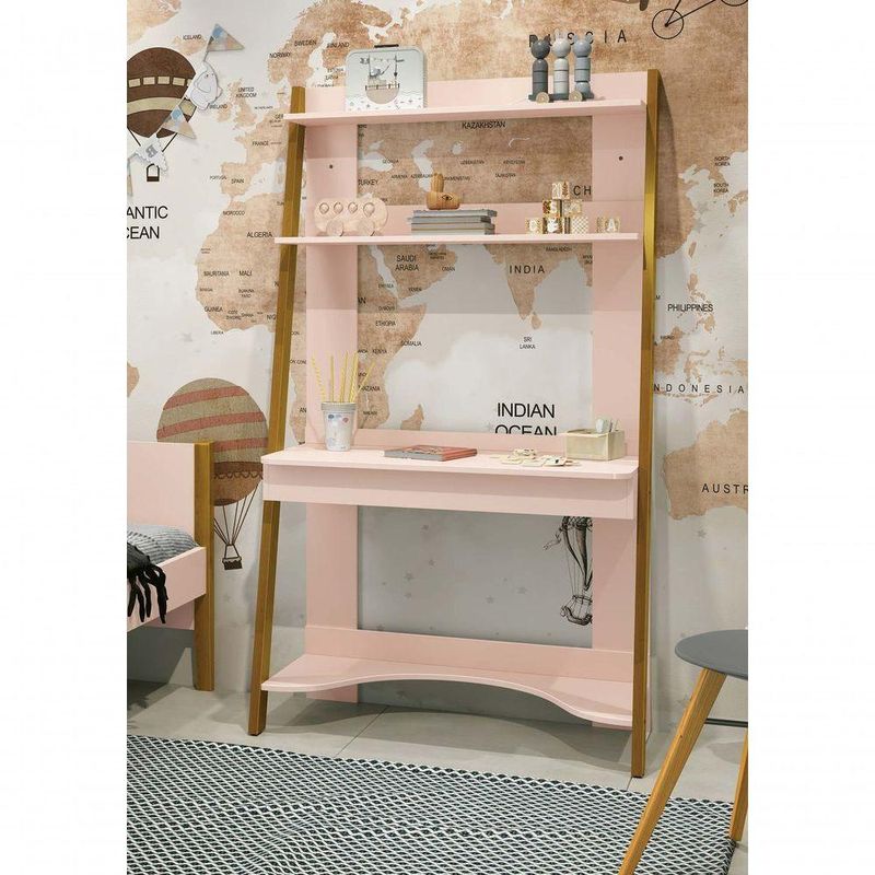 Estante Escrivaninha Simba Rosa Fosco - RellerModerna e prática a Escrivaninha Simba - RELLER promove funcionalidade para as crianças, na realização de tarefas e nos momentos de diversão, proporciona também um amplo espaço para organização com divisórias internas em seu tampo articulado e espaço para o apoio de itens decorativos.Dimensões do Produto Montado:Altura: 172 cmLargura: 95 cmProfundidade: 48 cmObservações:- Tampo articulado;- Espaço interno com divisória;- Pintura ultravioleta com acabamento fosco.