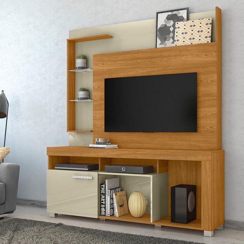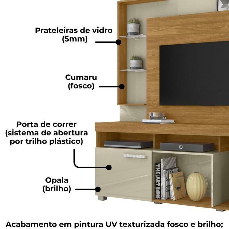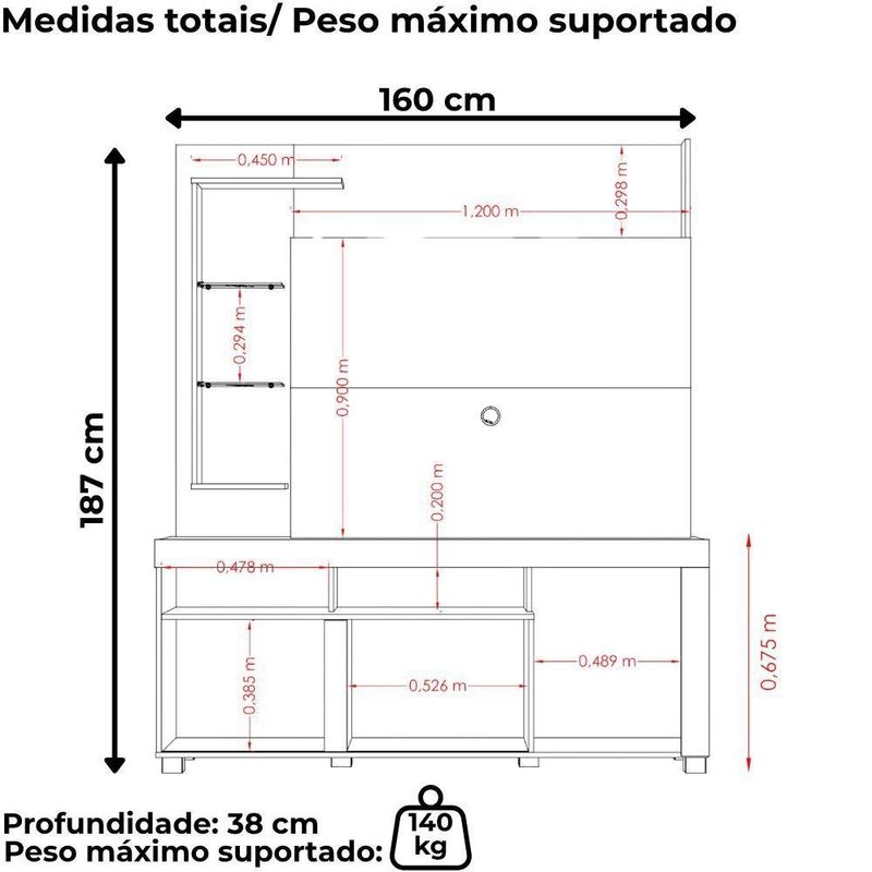 Estante Home 50 Pol 1 Porta 160 Cm Icaro Cumaru Opala MadetecEstante Home Ícaro, móvel funcional que valoriza a organização e decorações da sua sala. Estrutura em MDP 15 mm, conta com 1 porta de correr com sistema de abertura por trilho plástico, 5 prateleiras (sendo 2 laterais em vidro de 5 mm) e 3 nichos abertos. Acomoda TVs de até 50 polegadas (suporta até 140kg distribuídos), inclui passa fios, puxadores e 6 pés em plástico (poliestireno). Acabamento em pintura UV texturizada (fosca e brilho). Este móvel chegará em sua casa separado em 02 volumes.Dimensões:Altura: 187 cmLargura: 160 cmProfundidade: 38 cmEspecificações Técnicas:Modelo: IcaroMateriais: MDP 15mmAmbiente: SalasEstilo: ModernoPeso máximo suportado: 140kg distribuídosSistema de montagemParafuso e cavilhas.Manual de Montagem inclusoRecomendação de Limpeza:Para a limpeza, utilize um pano seco para retirada do pó. Evite o uso de produtos abrasivos e o direto com a umidade.Organização, estética e funcionalidade em um só móvel: a Estante Home Ícaro é perfeita para destacar sua decoração com eficiência.Importante SaberAs imagens são meramente ilustrativas, não acompanham objetos de decoração e eletrônicos.A tonalidade da cor do produto pode variar de acordo a calibração de cores do seu monitor, a iluminação do ambiente ou sua percepção visual. NÃO ACOMPANHA .O cliente deve verificar a quantidade de VOLUMES descritos na , as condições da embalagem, caso haja algum dano NÃO ASSINE o de e RECUSE a mercadoria.Montagem, desmontagem e outras instalações serão de responsabilidade do cliente.Não nos responsabilizamos por subir escadas/elevadores ou pelo por guincho em apartamentos. Eventuais despesas são de responsabilidade do comprador.Confira as dimensões do produto e certifique-se de que passarão normalmente por supostos elevadores, portas, escadas ou corredores de sua residência. Recomendamos que o responsável pelo confira se os produtos entregues correspondem ao modelo e à quantidade adquirida.Garantia De 90 dias para eventuais s de fabricação.Cor: Multicolorido | Tonalidade: Multicolorido | Produto: Estante | Comôdo indicado: Salas Cor: Cumaru Opala