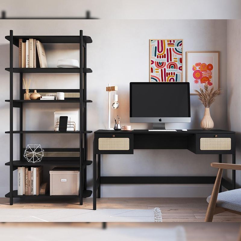 Transforme o seu ambiente em um espaço elegante e moderno com esse conjunto para escritório com Estante Livreiro 6 Prateleiras e Escrivaninha Moss, da Lyam Decor. Essas são as peças que faltavam para realçar a beleza e a funcionalidade de sua sala de estar, escritório ou home office. Com um design contemporâneo e sofisticado, essa estante de madeira e escrivaninha não são apenas um móvel, mas uma verdadeira obra de arte que combina estilo e praticidade de maneira harmoniosa. Com estrutura robusta, você terá amplo espaço para armazenar seus livros favoritos, exibir coleções e acomodar objetos de decoração que contam a sua história, enquanto a mesa para computador será o palco de grandes ideias e criações. Além disso, os pés em madeira maciça garantem não apenas resistência, mas também um toque de charme rústico que complementa qualquer ambiente. Para completar o charme, o aplique em tela sintética no painel traseiro da estante e nas duas gavetas da escrivaninha traz um toque artesanal, suave e acolhedor. Em outras palavras, a Estante Livreiro e a Mesa Escrivaninha Moss são uma solução prática e funcional para quem busca otimizar o espaço sem abrir mão do estilo! Aproveite e garanta já essa duplinha de tirar o fôlego. Dimensões da Estante Livreiro (L x A x P) 90 x 180 x 36,5 cm Características da Estante Livreiro: Estrutura em MDP 15mm com acabamento BP e traseira em HDF 3mm com acabamento BP. Produto na cor Nero e pés na cor Preto, ambos fosco. 06 prateleiras com cantos arredondados e detalhe traseiro com aplique de tela sintética (PVC com poliéster). Pés em madeira maciça de Eucalipto com design arredondado e sapatas emborrachadas para evitar atrito do móvel com o piso. Peso máximo suportado 30 kg distribuídos. Dimensões da Mesa Escrivaninha (L x A x P) 139 x 76,5 x 60 cm Características da Mesa Escrivaninha: Estrutura em MDP 15mm com acabamento BP e fundo em HDF 3mm. Produto na cor Nero e pés na cor Preto, ambos fosco. 02 gavetas com corrediças metálicas simples e aplique de tela sintética (PVC com poliéster). Puxadores de Poliestireno na cor Dourado. Pés em madeira maciça de Eucalipto com design arredondado e sapatas emborrachadas para evitar atrito do móvel com o piso. Possui longarina metálica antiempenamento embaixo do móvel. Peso máximo suportado 19 kg distribuídos. - A limpeza deve ser feita com pano levemente umedecido em água limpa, sem esfregar, não utilizar produtos abrasivos, desengordurantes, álcool ou solvente. Observações importantes: - Produto para uso residencial em ambiente interno, não devendo ficar exposto diretamente ao sol, calor e umidade excessivos. - Pode haver alguma diferença de tonalidade entre a imagem e o produto real, por conta do tratamento de imagens e a calibração de cores do seu monitor. - As imagens são meramente ilustrativas, não acompanham objetos de decoração e eletrônicos. - Ao receber a mercadoria, o cliente deve verificar as condições da embalagem, caso haja alguma avaria não assine o comprovante de recebimento. - Montagem, desmontagem e outras instalações serão de responsabilidade do cliente. Não nos responsabilizamos, no ato da entrega, por subir escadas/elevadores ou pelo transporte por guincho em apartamentos. Eventuais despesas são de responsabilidade do comprador. - Confira as dimensões do produto e certifique-se de que passará normalmente por supostos elevadores, portas, escadas e/ou corredores de sua residência.