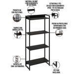 Com a Estante Multiuso Para Escritório Industrial 04 Prateleiras Areta 145x60cm C01 Onix - Lyam Decor, o conceito industrial ficará evidente no seu ambiente, tornando o mesmo muito mais moderno, sofisticado e organizado, garantindo isso com 04 prateleiras que deixam tudo prático e funcional. Uma característica muito forte dos móveis industriais é a união do tubular de estrutura exposta com a madeira, que dão todo o charme para agregar no estilo que está entre os mais buscados no ramo de arquitetura e decoração. Dimensões do produto (L x A x P) 60 x 145 x 30 cm Medidas Internas: Altura da prateleira: 39,7 cm Largura da prateleira: 56 cm Características: 04 prateleiras produzidas em MDP, com acabamento em BP acetinado. Pés em tubo de aço com sapatas niveladoras e acabamento em pintura texturizada epóxi, responsável por criar alta resistência á umidade e produtos químicos, facilitando também na limpeza e manutenção. Fita de borda em PVC. Solda com acabamento suavizado. Produto na cor Onix. Suporta até 7 kg por prateleira. Produto entregue desmontado, acompanha manual de montagem. Para a limpeza, utilize flanela seca. Evite contato com produtos químicos (solventes, thinner, acetona, etc) e não utilize nenhum tipo de esponja de aço. Observações importantes: A montagem será de responsabilidade do comprador; Responsabilizamo-nos pela entrega em todo território nacional, até onde as rodovias alcançam, entregas fluviais ou aéreas devem ser cotadas a parte; As imagens são ilustrativas, não acompanham objetos de decoração e eletrônicos; Não nos responsabilizamos, no ato da entrega, por subir escadas/elevadores ou transporte por guincho em apartamentos. Eventuais despesas são de responsabilidade do comprador; Confira as dimensões do produto e certifique-se de que passará normalmente por supostos elevadores, portas, escadas e/ou corredores de sua residência;