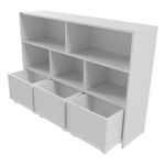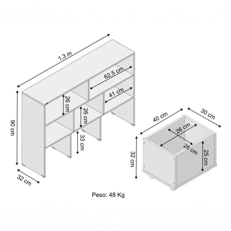 Estante Organizador Com Baús Natan Branco 100% MdfOlá, nós somos a WoodCore! =)Os nossos móveis são totalmente confeccionados com MDF da mais alta qualidade para proporcionar um móvel bonito, durável e resistente. MDF é a sigla para Medium Density Fiberboard que consiste numa placa de fibra de madeira de média densidade que são fabricadas a partir de madeiras como pinus e eucalipto, resinas sintéticas e aditivos para evitar a proliferação de fungos e cupins.Nossos designs são modernos e exclusivos, pois as peças em MDF são cortadas com processos computadorizados de alta precisão. Utilizamos poucas variações de parafusos e peças com encaixe onde for possível para deixar o processo de montagem facilitado.Além de ter um móvel de alta qualidade, sua casa vai ficar muito mais bonita com nossos produtos!Esperamos tirar todas as suas dúvidas com a descrição abaixo, mas caso ainda tenha alguma questão, não hesite entrar em contato conosco no campo de perguntas abaixo.DESCRIÇÃO DO PRODUTOLargura: 1,30 mAltura: 90 cmProfundidade: 32 cmNICHOS SUPERIORESLargura: 62,5 cmAltura: 26 cmProfundidade: 31 cmNICHOS INFERIORESLargura: 41 cmAltura: 26 cmProfundidade: 31 cmBAÚS (medidas externas)Largura: 40 cmAltura: 32 cmProfundidade: 30 cmBAÚS (medidas internas)Largura: 36 cmAltura: 25 cmProfundidade: 26 cmMaterial: 100% MDF 15mm TXT branco melamínico.- Todos os baús ACOMPANHAM rodízios giratórios.ATENÇÃO!- Produto acompanha manual de montagem.- Produto NOVO.- Garantia de 90 dias.- TODOS os produtos acompanham Nota Fiscal.- Suporte após a compra via Chat e WhatsApp.- Atente-se ao PRAZO DE ENTREGA para que tenha alguém no local, caso contrário será gerado custo pela reentrega pago pelo comprador.- Produto desmontado e a montagem é por conta do comprador.- Em caso de condomínios ou edifícios o produto é entregue na portaria ou térreo.