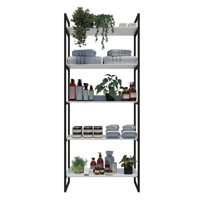 ESTANTE ESTILO INDUSTRIAL OFFICEHoje em dia móveis carregam um peso maior do que apenas funcionalidade, móveis são identidade e personalidade.Um ambiente bem decorado e confortável é um lugar onde todos querem ficar.Manter a casa organizada é muito importante, garantir organização, estilo, funcionalidade e conforto para seu ambiente .Confeccionada em metal e madeira com seu design assimétrico e seu estilo industrial fica impossível não se apaixonar por ele.[Medidas]- Altura: 190cm- Largura: 80cm- Profundidade: 40cm[DESCRIÇÃO DO PRODUTO]- Material Tampo: Mdp Bp Acetinado- Estrutura: Aço C/Acabamento Epóxi- Acabamento / Revestimento: Bp Acetinado- Fita De Borda: Pvc- Escala De Brilho: Fosco- Necessita De Montagem: Sim - Garantia: 90 dias Contra Defeito De Fabricação- A altura entre as prateleiras é de 38cm e o móvel suporta aproximadamente 5kg por prateleira, recomendamos distribuir bem o peso para não sobrecarregar as prateleiras.- A estrutura da base de aço já vem pronta e não precisa soldar