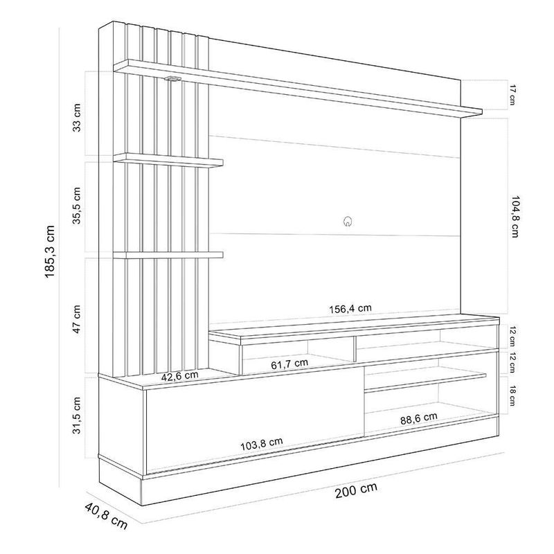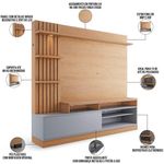 Estante Painel Para 65 Pol Com Led Aracati C04 Freijó Cinza Fosco - Lyam DecorA combinação perfeita entre os estilos clássico e contemporâneo, a Estante Painel Para 65 Pol com LED Aracati C04 Freijó Cinza Fosco, da Lyam Decor, é a opção certa para criar uma sala de estar moderna e funcional.O painel para ganha destaque com os detalhes ripados sob enfoque do spot de LED, além de possuir um design projetado para televisores de até 65 polegadas. Já os nichos abaixo da bancada são excelentes para acomodar os demais aparelhos eletrônicos, enquanto os nichos laterais e prateleiras podem exibir os mais diversos itens decorativos. Para completar, o compartimento interno da porta garante a organização. E aí, que tal apostar em um móvel único e cheio de estilo?! Aproveite agora mesmo e garanta já a sua estante home. Dimensões do produto (L x A x P) 200 x 185,3 x 40,8 cm. Características: Estrutura em produzida em MDP 25mm, MDP 15mm, MDP 12mm e HDF 3mm. Acabamento em pintura UV fosco. Suporta de até 65 polegadas. Peso máximo suportado 88 kg distribuídos. 01 porta basculante com dobradiça metálica e pistão a gás. 02 Nichos para dispositivos eletrônicos e 02 nichos para itens decorativos. Painel com detalhe ripado decorativo e spot de LED. 08 pés plásticos com instalação opcional. - Produto entregue desmontado, acompanha manual de montagem. Sistema de montagem: Girofix, Cavilhas, Cantoneiras e Parafusos. - Este produto deve ser limpo com pano macio e seco. Não utilize produtos abrasivos como álcool e detergente, assim como esponjas rígidas ou palha de aço. - Proteja a superfície do móvel de objetos que transmitam calor ou umidade. Observações importantes: - Produto para uso residencial em ambiente interno, não devendo ficar exposto diretamente ao sol, calor e umidade excessivos. - Pode haver alguma diferença de tonalidade entre a imagem e o produto real, por conta do tratamento de imagens e a calibração de cores do seu monitor. - As imagens são meramente ilustrativas, não acompanham objetos de decoração e eletrônicos. - Ao receber a mercadoria, o cliente deve verificar as condições da embalagem, caso haja alguma não assine o de . - Montagem, desmontagem e outras instalações serão de responsabilidade do cliente. Não nos responsabilizamos, no ato da , por subir escadas/elevadores ou pelo por guincho em apartamentos. Eventuais despesas são de responsabilidade do comprador. - Confira as dimensões do produto e certifique-se de que passará normalmente por supostos elevadores, portas, escadas e/ou corredores de sua residência. Altura: 185 cm | Color: Freijó Cinza Fosco | ColorFamily: Freijó | ColorSimple: Freijó | ColorSupplier: Freijó Cinza Fosco | Com compartimento para alto-falantes: Não | Com rodas: Não | Cor: Freijó Cinza Fosco | Formato do móvel: Estante | Largura: 200 cm | Material: MDP | Material da estrutura: MDP | MaterialFamily: MDP | Model: Aracati | OriginCountry: | OriginState: PR | ProductContents: 01 Estante | ProductHeight: 185 cm | ProductInstructions: Produto para uso em ambiente interno, nao devendo ficar exposto ao sol, calor e umidade excessivos. | ProductLength: 41 cm | ProductWarranty: 90 dias após o do produto | ProductWeight: 91 kg | ProductWidth: 200 cm | Profundidade: 41 cm | Quantidade de portas: 1 | Quantidade de prateleiras: 4 | Requer montagem: Sim | SizeDescription: Altura: 185 cm x Largura: 200 cm x Profundidade: 41 cm | SupplierSimpleName: Estante Painel Para 65 Pol com LED Aracati C04 Freijó Cinza Fosco - Lyam Decor | Tamanho máximo de : 65 Polegadas