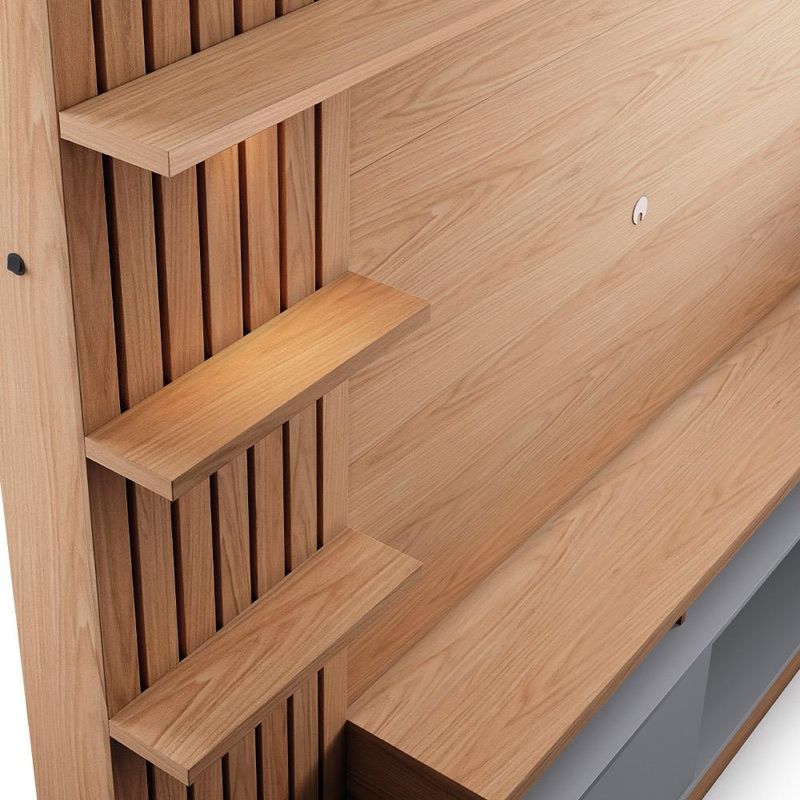 A combinação perfeita entre os estilos clássico e contemporâneo, a Estante Painel Para TV 65 Pol com LED Aracati C04 Freijó Cinza Fosco, da Lyam Decor, é a opção certa para criar uma sala de estar moderna e funcional. O painel para TV ganha destaque com os detalhes ripados sob enfoque do spot de LED, além de possuir um design projetado para televisores de até 65 polegadas. Já os nichos abaixo da bancada são excelentes para acomodar os demais aparelhos eletrônicos, enquanto os nichos laterais e prateleiras podem exibir os mais diversos itens decorativos. Para completar, o compartimento interno da porta garante a organização. E aí, que tal apostar em um móvel único e cheio de estilo?! Aproveite agora mesmo e garanta já a sua estante home. Dimensões do produto (L x A x P) 200 x 185,3 x 40,8 cm. Características: Estrutura em produzida em MDP 25mm, MDP 15mm, MDP 12mm e HDF 3mm. Acabamento em pintura UV fosco. Suporta TV de até 65 polegadas. Peso máximo suportado 88 kg distribuídos. 01 porta basculante com dobradiça metálica e pistão a gás. 02 Nichos para dispositivos eletrônicos e 02 nichos para itens decorativos. Painel com detalhe ripado decorativo e spot de LED. 08 pés plásticos com instalação opcional. - Produto entregue desmontado, acompanha manual de montagem. Sistema de montagem: Girofix, Cavilhas, Cantoneiras e Parafusos. - Este produto deve ser limpo com pano macio e seco. Não utilize produtos abrasivos como álcool e detergente, assim como esponjas rígidas ou palha de aço. - Proteja a superfície do móvel de objetos que transmitam calor ou umidade. Observações importantes: - Produto para uso residencial em ambiente interno, não devendo ficar exposto diretamente ao sol, calor e umidade excessivos. - Pode haver alguma diferença de tonalidade entre a imagem e o produto real, por conta do tratamento de imagens e a calibração de cores do seu monitor. - As imagens são meramente ilustrativas, não acompanham objetos de decoração e eletrônicos. - Ao receber a mercadoria, o cliente deve verificar as condições da embalagem, caso haja alguma avaria não assine o comprovante de recebimento. - Montagem, desmontagem e outras instalações serão de responsabilidade do cliente. Não nos responsabilizamos, no ato da entrega, por subir escadas/elevadores ou pelo transporte por guincho em apartamentos. Eventuais despesas são de responsabilidade do comprador. - Confira as dimensões do produto e certifique-se de que passará normalmente por supostos elevadores, portas, escadas e/ou corredores de sua residência.