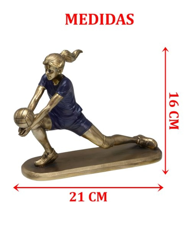 Estatueta Decorativa Jogadora Vôlei Escultura Em Resina 16cm - Comemore a paixão pelo vôlei com nossa estátua exclusiva de jogadora de vôlei! Apresentamos a nossa estatueta de jogadora de voleibol, uma peça dinâmica e elegante que capta a energia e a habilidade deste desporto emocionante. Ideal para enfeitar campos, gabinetes de treinadores ou como presente especial para jogadores e torcedores, esta estatueta reflete o espírito competitivo e o esforço de cada jogo. Especificações: Cores: Roxo e Bronze; Material: 100% Resina; Medidas: Altura 16cm X Largura 21cm X Comprimento 7cm; Colecionadores: Uma adição valiosa para quem coleciona estatuetas e itens temáticos da profissão; Conteúdo Da Embalagem: 1 Estatueta Decorativa De Jogadora De Vôlei Em Resina De 16cm; Características Gerais do Produto: • Material: Resina • Modelo: Escultura Jogadora De Vôlei • Cor: Bronze; Roxo • Dimensões aproximadas: Altura 16cm X Largura 21cm X Comprimento 7cm Garantia: • Garantia contra avarias no transporte