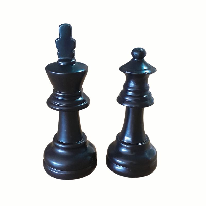 Estatuetas Rei e Rainha de Xadrez Black 14,5cm e 12,5cm Verito As estatuetas ou esculturas decorativas são objetos usados para finalizar a decoração. são as peças ais queridas por quem é apaixonado por jogo de xadrez, independentes do local aonde forem posicionadas sempre valorizam a decoração do ambiente. Este kit está lindo acompanha uma Rainha de 12,5cm e um Rei de 14,5cm de altura, é ideal para compor salas, halls ou escritórios, tornando-os ainda mais interessante e com um charme em particular. confeccionada em cerâmica dourada, elas são a combinação perfeita para ser o centro de atenção em ambientes internos. Garanta já a sua escultura, com certeza você irá se apaixonar por cada mínimo detalhe! Dimensões do produto: Altura do Rei: 14,5cm Altura da Rainha: 12,5cm Especificações do produto: Material: Cerâmica Cor: Preto Marca: Verito Ref.: KING AND QUEEN Itens inclusos: 1 kit decor. As imagens contidas neste anúncio são FOTOS REAIS do produto. Nosso lema é: "Prefiro explicar o meu preço, ao me desculpar pela qualidade".