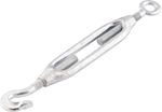 Conteúdo da embalagem1 Esticador para cabo de açoAplicações e dicas de usoUtilizado para tensionar/esticar cabos de aço e cordoalhas, uso leve, não deve ser usado em aplicações de movimentação de cargas como tração, elevação ou estaiamento. A medida do esticador deve ser compatível com a medida do cabo de aço.Destaques e diferenciaisPossui tratamento galvanizado, proporcionando resistência à oxidação/corrosão DETALHES TÉCNICOS Tipo do esticador para cabo de aço: Gancho/Olhal Material do esticador para cabo de aço: Aço baixo carbono Acabamento do esticador para cabo de aço: Galvanizado Medida do esticador para cabo de aço: 7/8" Comprimento do corpo (LA): 325 mm Comprimento do pino (l1): 173 mm Comprimento do pino (l2): 173 mm Comprimento (m): 29 mm Abertura útil do gancho (i): 24 mm mm Comprimento da rosca (b): 160 mm Diâmetro externo do olhal (di): 60 mm mm Diâmetro interno do olhal (da): 30 mm mm Carga de trabalho do esticador: 1500 kgf Fator de segurança do esticador: N/A