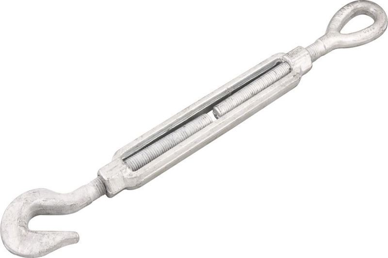 Conteúdo da embalagem1 Esticador para cabo de açoAplicações e dicas de usoIndicado para esticar cabos de aço e correntes. Uso industrial.Destaques e diferenciaisMaterial fabricado e testado conforme a Norma FS FF-T-791B tipo 1, forma 1, classe 6, corpo galvanizado a fogo proporcionando melhor resistência à oxidação/corrosão DETALHES TÉCNICOS Tipo do esticador para cabo de aço: Gancho/Olhal Material do esticador para cabo de aço: Aço carbono Acabamento do esticador para cabo de aço: Galvanizado a fogo Medida do esticador para cabo de aço: 3/8" Comprimento do corpo (LA): 182 mm Comprimento do pino (l1): 110 mm Comprimento do pino (l2): 110 mm Comprimento (m): 15 mm Abertura útil do gancho (i): 14 mm Comprimento da rosca (b): 97 mm Diâmetro externo do olhal (di): 48 mm Diâmetro interno do olhal (da): 28 mm Carga de trabalho do esticador: 454 kgf Carga de ruptura do esticador: 2250 kgf Fator de segurança do esticador: 5:1 Norma de referência do esticador para cabo de aço: FS FF-T-791 B tipo 1, forma 1, classe 6