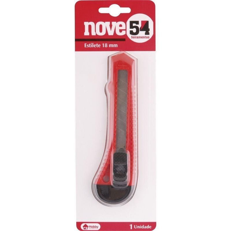 Estilete Largo 18mm Corpo Plástico - Nove54Conteúdo da embalagem1 Estilete, acompanha: 1 lâminaAplicações e dicas de usoIndicado para fazer cortes em geralDestaques e diferenciaisPossui dispositivo para travamento da lâmina que facilita o manuseioDETALHES TÉCNICOS Material do corpo do estilete: Plástico Tipo da lâmina: Reta segmentada Comprimento total do estilete: 150 mm Largura da lâmina: 18,0 mm Marca: Nove54 | Produto: Estilete | Quantidade de lâminas de reposição: 0 | Condição do item: Novo | Largura da lâmina: 18 | É kit: Não | Capacidade de armazenamento de lâminas: 0 | Tipo de estilete: Largo