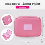Estojo Box Organizador Escolar Com Divisórias E 24 ElásticosEstojo Box Organizador Escolar com Divisórias e 24 Elásticos - Organização prática para canetas e materiais escolares, com amplo espaço, divisória interna e design modernoEstojo Box Organizador Escolar com Divisórias – 24 Elásticos | Jacki DesignOrganização, praticidade e estilo no seu dia a dia!O Estojo Box da Jacki Design foi desenvolvido para quem busca manter lápis, canetas e acessórios sempre arrumados e de fácil acesso. Com design moderno e estrutura reforçada, ele é perfeito para escola, faculdade, escritório ou para quem ama itens de papelaria bem organizados.Fabricado em microfibra de alta qualidade, o estojo é resistente, leve e fácil de limpar. Possui divisória interna, 24 elásticos organizadores e amplo espaço para acomodar até 100 canetas, além de marcadores, borrachas, post-its, régua pequena e outros acessórios.Sua estampa lisa com bordas coloridas e tag emborrachada da Jacki Design garantem um visual moderno, enquanto o zíper grande e durável oferece abertura prática e segura. O interior é totalmente forrado, aumentando a proteção dos seus materiais.Complete seu kit com outros produtos da coleção Jacki Design e deixe sua rotina ainda mais organizada!Diferenciais do ProdutoMaterial resistente em microfibra premiumComporta até 100 canetas24 elásticos organizadores para lápis, canetas e marcadoresDivisória interna para melhor organizaçãoDesign moderno com bordas coloridasTag emborrachada da marcaEstojo totalmente forrado por dentroZíper grande e reforçadoLeve, prático e multifuncionalEspecificaçõesMaterial: MicrofibraMedidas: Comprimento: 21 cm x Profundidade: 15 cm x Altura: 5 cmAcompanha o produto: - 1 - Estojo