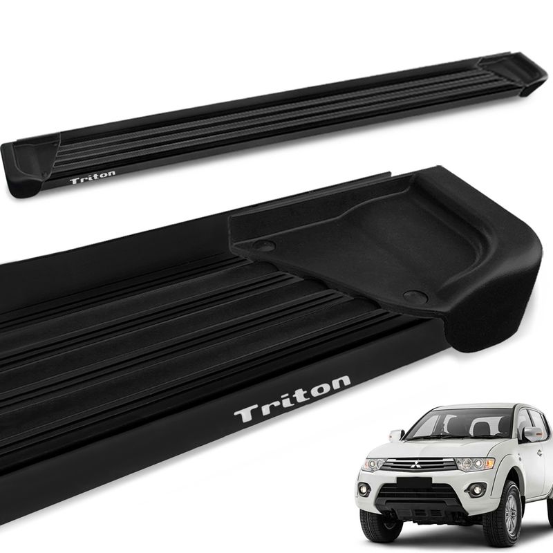 Estribo Lateral L200 Triton 2008 a 2018 Aluminio Preto A1 Gtnox O estribo lateral plataforma é um acessório instalado na lateral do veículo, tendo como objetivo auxiliar na entrada e saída do motorista e dos passageiros que possibilita uma capacidade máxima suportada de até 100kg para subida e descida, com seu design moderno e esportivo, proporcionando um visual ainda mais completo para seu Veículo. Desenvolvido pela Gtnox, fabricante com referência nacional pela sua qualidade em fabricação de acessórios automotivos. Projetou o estribo de maneira que, não seja necessário a realização de furos para a fixação do produto, preservando assim a originalidade de seu veiculo Fabricado em alumínio Preto, material de alto padrão e resistência, o estribo possui em seu comprimento borrachas antiderrapantes com ponteiras injetadas em plástico ABS, concedendo ainda mais beleza à peça. Especificações Técnicas: Fabricado em Aluminio Design elegante e moderno Adesivo Resinado Cor do estribo Preto Capacidade de até 100 kg distribuídos Pisante com borracha antiderrapante Não realiza furos para fixação Completo com kit de instalação Tabela de Aplicação: Mitsubishi L200 Triton 2008 L200 Triton 2009 L200 Triton 2010 L200 Triton 2011 L200 Triton 2012 L200 Triton 2013 L200 Triton 2014 L200 Triton 2015 L200 Triton 2016 L200 Triton 2017 L200 Triton 2018 Compatível com todas as versões.