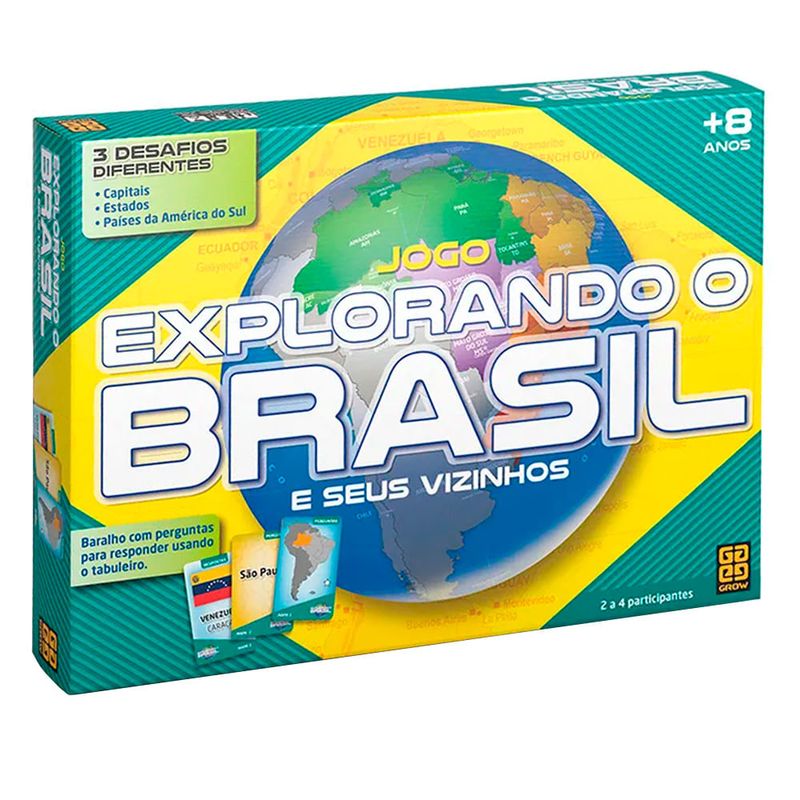 Jogo de Tabuleiro - Explorando o Brasil - GROWUm jogo para você conhecer a geografia do Brasil A criança vai jogar e localizar cada estado e sua capital, além dos principais picos, rios, vegetações e climas distribuídos pelo nosso país São dois mapas: um com os nomes dos estados e outro, para dificultar um pouco mais, sem a marcação dos nomes Explorando o Brasil Um jogo para você testar todo o seu conhecimento sobre o Brasil Ser o melhor “Explorador do Brasil”, fazendo a maior pontuação no final da partida Detalhes: Certificação: Certificado Pelos Órgãos Autorizados - OCP`S(Organismos De Certificação De Produtos) Registri : CE-BRI/ICEPEX-N 01024-25 NM 300/2004 OCP 0046 Características: Conteúdo da Embalagem: 1 Tabuleiro e Acessórios Material/Composição: papel cartão,Plastico Ref: 01658 Marca:Grow Modelo:Explorando o Brasil Idade Indicada:7+ Código de Barras: 78912190165852 Aviso: As cores podem variar entre as imagens mostradas acima e o produto Imagens meramente ilustrativas Garantia: 3 Meses contra defeitos de fabricação