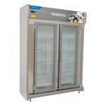 Expositor De Bebidas 2 Portas Polofrio Expositor Europeu Preto 220vExpositor de Bebidas 2 Portas Polofrio. Refrigeração por ar forçado. Regulagem via controlador digital. Iluminação em LED branca. Pés reguláveis. Revestimento interno em chapa branca pré pintada e acabamento frontal externo em aço inox. Degelo automático. Isolamento térmico em poliuretano. Portas vidro temperado duplo baixo emissivo com fechamento automático. Acabamento das portas e faixa disponíveis nas cores: cinza, azul, vermelho e preto. TEMPERATURA: Frios e laticínios: +3°C a +7°C. Frutas e verduras: +3°C a +12°C. Bebidas: -2°C a +3°C. PRATELEIRAS: 4 níveis de grades em aramado reguláveis por portas. PESO: 117 Kg. POTÊNCIA: 550 W. CONSUMO: 8,80 kW/h. CAPACIDADE: 1009 L. DIMENSÕES EXTERNAS (CxAxL): 150x210x60cm. Auto serviço 3 portas Linha Europeu Polofrio é na ATAU.Marca - PolofrioModelo - 2 PortasCapacidade - 1009 LFrente - 1,50mAltura - 2,10mProfundidade - 60cmTemperatura - -2º a +12º CPeso - 117 KgConsumo - 8,80 KW/hPortas - 3 PortasPrateleiras - 4