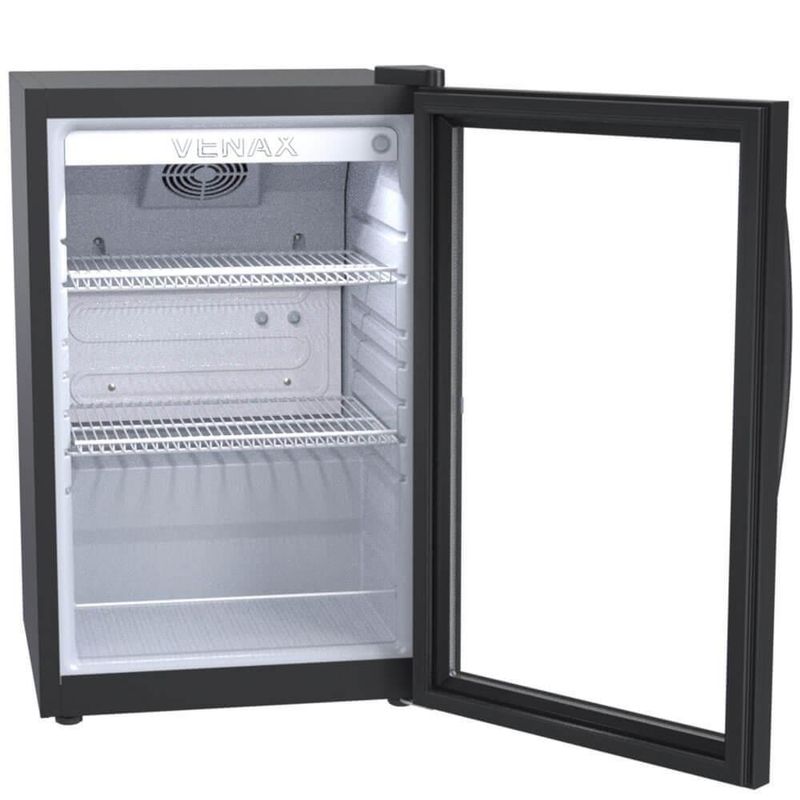 Expositor De Bebidas Venax 100 Litros Vv Led Branco Preto Fosco 110V 25926- Com design moderno em preto fosco e iluminação em LED branco, o Expositor Venax 100L é ideal para valorizar e conservar bebidas não alcoólicas como sucos, águas e refrigerantes.- Suas duas prateleiras reguláveis oferecem flexibilidade na organização, enquanto o controle de temperatura de 0°C a 5°C garante bebidas sempre na temperatura ideal.-Fabricado pela Venax, referência em refrigeração, é a escolha certa para quem busca qualidade, durabilidade e destaque visual no ambiente comercial.EXPOSITOR DE BEBIDAS VENAX 100 LITROS VV LED BRANCO PRETO FOSCO COM 2 PRATELEIRAS REGULÁVEIS 110V 25926Marca: VenaxModelo: Led Branco Preto Fosco 100L 110V 25926DESCRIÇÃO DO EXPOSITOR DE BEBIDAS- Produto ideal para exposição e resfriamento de bebidas não alcoolicas como águas,sucos e refrigerantes.INFORMAÇÕES TÉCNICAS- Tipo: Expositor de Bebidas- Controlador de Temperatura: Mecânico, Regulável(0°C a 5°C)- Iluminação Interna: LED Branco- Porta: Vidro Duplo (LOW-E)- Aquecimento da Porta: Não- Puxador da Porta: Aço- Abertura da Porta: Da Esquerda para Direita- Trava de Abastecimento: Não- Degelo: Natural- Dreno: Traseiro- Recipiente de Degelo: Sim- Prateleiras: 2 Reguláveis- Evaporador: Ar Forçado- Sistema de Refrigeração: Compressor- Gás Refrigerante: R134a- Pés: Frontais Reguláveis e Traseiros com Rolete- Gabinete Interno: PSAI- Gabinete Externo: Aço Revestido com Pintura Eletrostática- Testeira: Não- Capacidade de Armazenamento: Lata 350ml: 96 / 473ml: 78 / Garrafa 600ml: 34 / 1L: 20 / 2L: 18Especificações Técnicas- Tensão: 110V- Frequência: 60Hz- Isolamento Térmico: Poliuretano- Etiquetas: Inmetro- Potência: 165W- Volume Líquido: 82LGARANTIA- 1 ano.PESO- 31.5 kg.DIMENSÕES- Dimensões do Produto (Compr. x Larg. x Alt.): 61 x 49,5 x 80 cm;- Dimensões da Embalagem (Compr. x Larg. x Alt.): 63 × 51 × 85 cm.PERGUNTAS FREQUENTES:1. O expositor é indicado para refrigerar bebidas alcoólicas?Não. Este modelo é ideal para bebidas não alcoólicas, como sucos, águas e refrigerantes. Para bebidas alcoólicas, recomenda-se consultar um modelo específico.2. Qual é a capacidade de armazenamento do expositor?Ele comporta até 96 latas de 350ml, 78 latas de 473ml, 34 garrafas de 600ml, 20 garrafas de 1 litro ou 18 garrafas de 2 litros.3. O controle de temperatura é digital?Não. O expositor conta com controlador de temperatura mecânico, regulável entre 0°C e 5°C.4. O aparelho realiza degelo automático?Não. O degelo é natural, mas o equipamento possui dreno traseiro e recipiente de degelo para facilitar a manutenção.5. As prateleiras são fixas ou ajustáveis?O expositor possui 2 prateleiras reguláveis, que permitem adaptar o espaço interno conforme o tamanho das embalagens. Modelo alfanumérico: VV100 25926 | Cor da Expositora: Preto Fosco | Capacidade em volume: 82 Litros | Quantidade de portas: 1 | Com luz interior: Sim | Com controle de temperatura: Sim | Temperatura mínima: 0°C | Temperatura máxima: 5°C | É cervejeira: Não | Sistema de refrigeração: Compressor | Altura: 80 cm | Largura: 49,5 cm | Comprimento: 61 cm | Capacidade de latas 350ml: 96 latas | Capacidade de garrafas 600ml: 34 garrafas | Capacidade de garrafas 1L: 20 garrafas | Capacidade de garrafas 2L: 18 garrafas | Capacidade de latas 473ml: 78 latas | Cor do LED: Branco | voltagem: 110V | Cor: Preto Fosco | Profundidade: 61 cm | Prateleiras: 3 | Capacidade de garrafas: 34 | Cubagem: 0.280476 | ProdutoAltura-cm: 80 | Modelo: 100 L VV Preto Fosco | EmbalagemLargura-cm: 54 | Dias Entrega Fornecedor: 1 | Marca: Venax | Altura Produto: 80 | Peso Líquido: 0.0000 | Largura Produto: 50 | ProdutoLargura-cm: 50 | EmbalagemAltura-cm: 86 | EmbalagemComprimento-cm: 65